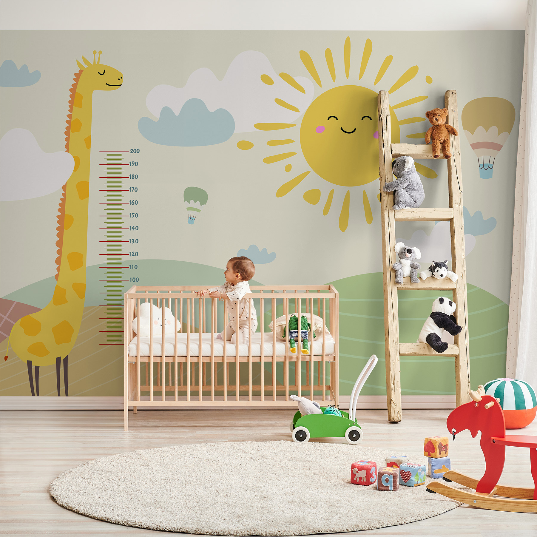 ¿Tienes un pequeño aventurero en casa? Este encantador mural de jirafa es pura alegría. Perfecto para las habitaciones de los niños, no es sólo una gran y soleada jirafa, también es una divertida forma de medir el crecimiento de su hijo. Imagínese la emoción de ver cuánto ha crecido cuando se apoya en el cuello de la jirafa. Además, el sol brillante y alegre y los globos aerostáticos de colores añaden un toque de fantasía que hará que cualquier habitación parezca una ensoñación feliz. Este mural no es sólo decoración; es como un amigo simpático y juguetón que espera para saludar a tu hijo cada mañana. Ya sea para tu hijo, para la habitación de un bebé o para cualquier espacio infantil, ¡este mural de animales trae sonrisas y dulces recuerdos a medida que alcanzan nuevas alturas!