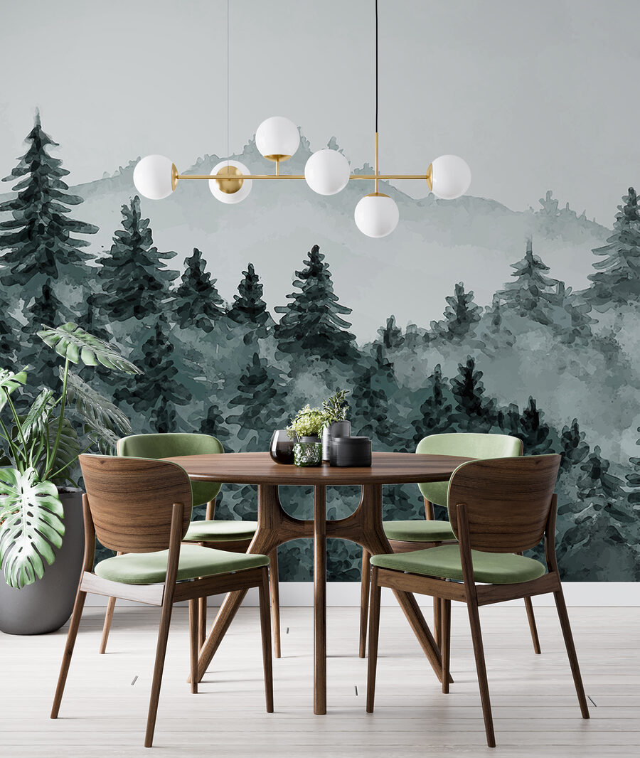 Imagínese que entra en su salón y, de repente, se encuentra en un bosque tranquilo y brumoso. Este mural “Bosque brumoso con árboles de hoja perenne” es como llevar un bosque sereno directamente a sus paredes. Perfecto para esos momentos en los que quieres escapar del ajetreo y el bullicio sin salir de tu acogedor espacio. Tiene un aire de acuarela de ensueño que resulta muy relajante. Imagínate tu café matutino con esta escena brumosa, ¡es como un mini retiro! Ideal para cualquier espacio que necesite un toque de la magia de la naturaleza, el ambiente de este mural es de paz y tranquilidad.