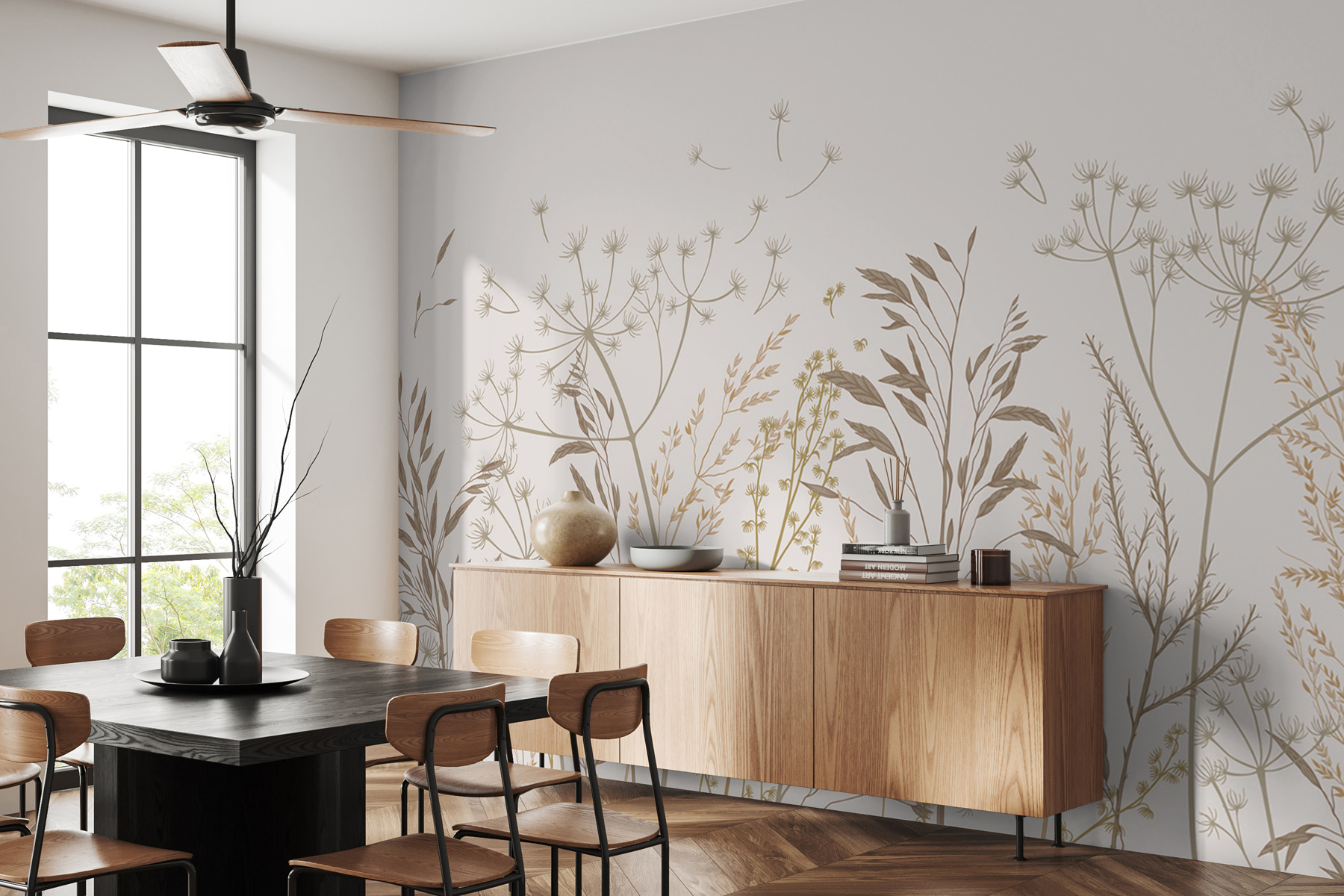 Imagine despertarse cada mañana con un sereno campo de delicadas hojas marrones meciéndose suavemente sobre un nítido fondo blanco. Eso es lo que obtendrá con este mural de pared. Perfecto para los amantes de la naturaleza y los que anhelan un soplo de aire fresco en su hogar. En serio, es como tener un trocito de naturaleza en el salón de casa, ¡sin bichos!