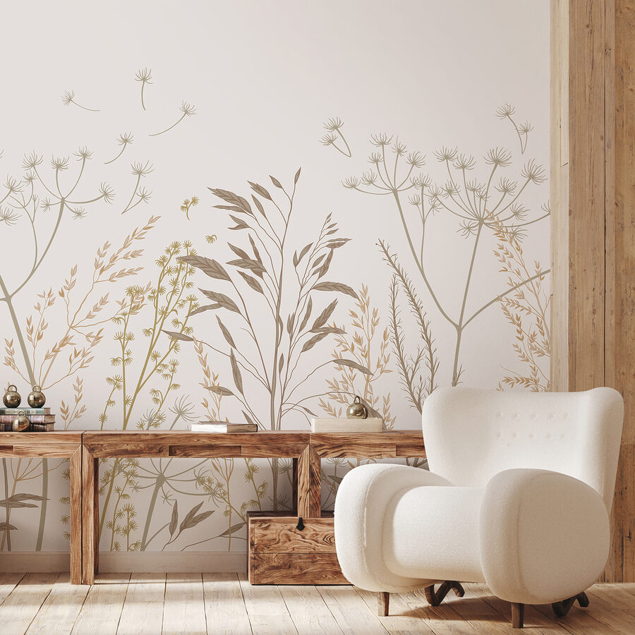 Imagine despertarse cada mañana con un sereno campo de delicadas hojas marrones meciéndose suavemente sobre un nítido fondo blanco. Eso es lo que obtendrá con este mural de pared. Perfecto para los amantes de la naturaleza y los que anhelan un soplo de aire fresco en su hogar. En serio, es como tener un trocito de naturaleza en el salón de casa, ¡sin bichos!