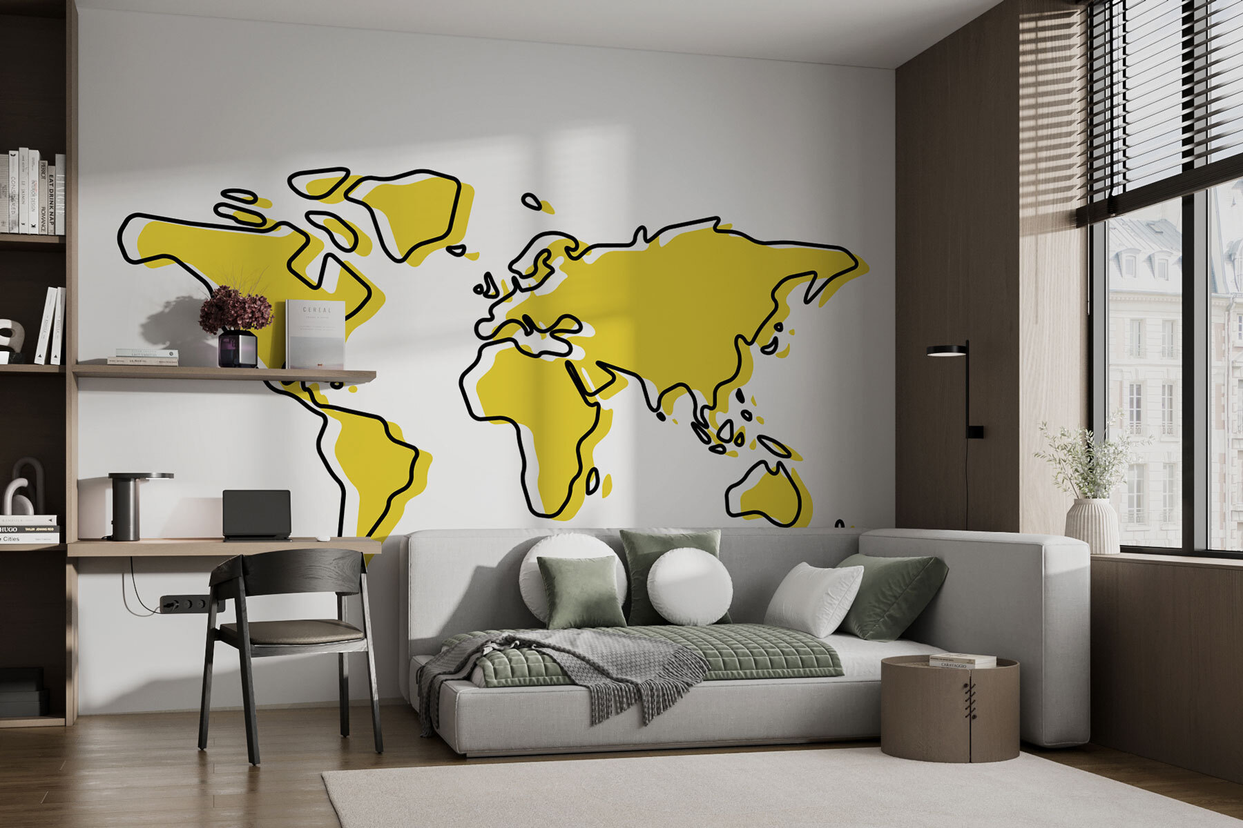 Un toque de diversión y otro de educación, ¿verdad? Perfecto para despertar la curiosidad de los más jóvenes. Y, oye, incluso podría inspirar espontáneos concursos de geografía: ¿quién iba a decir que aprender podía ser tan elegante? Ya sea para decorar la habitación de un niño o para dar un toque de estilo a un salón, este mural es perfecto para iniciar una conversación.