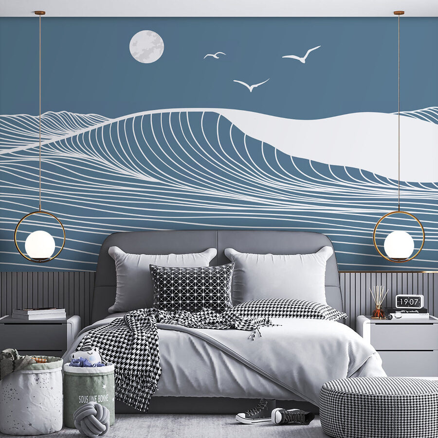 Echa un vistazo a este impresionante mural, “Líneas blancas sobre fondo azul”. Imagínatelo en el salón de tu casa o en tu despacho: es como contemplar un abismo azul de ensueño. ¿Esas líneas blancas arremolinadas? Recuerdan a suaves olas, ¿verdad? Tiene un aire tranquilo, casi como si estuvieras en una playa serena al atardecer. Perfecto para espacios en los que quieras añadir un toque de calma y creatividad. Ya sea para animar una pared aburrida o para crear un punto focal, este mural le cubrirá las espaldas. Sumérjase en la tranquilidad cada vez que lo vea. Se siente como un soplo de aire fresco del océano, ¿verdad? 🌀🌊