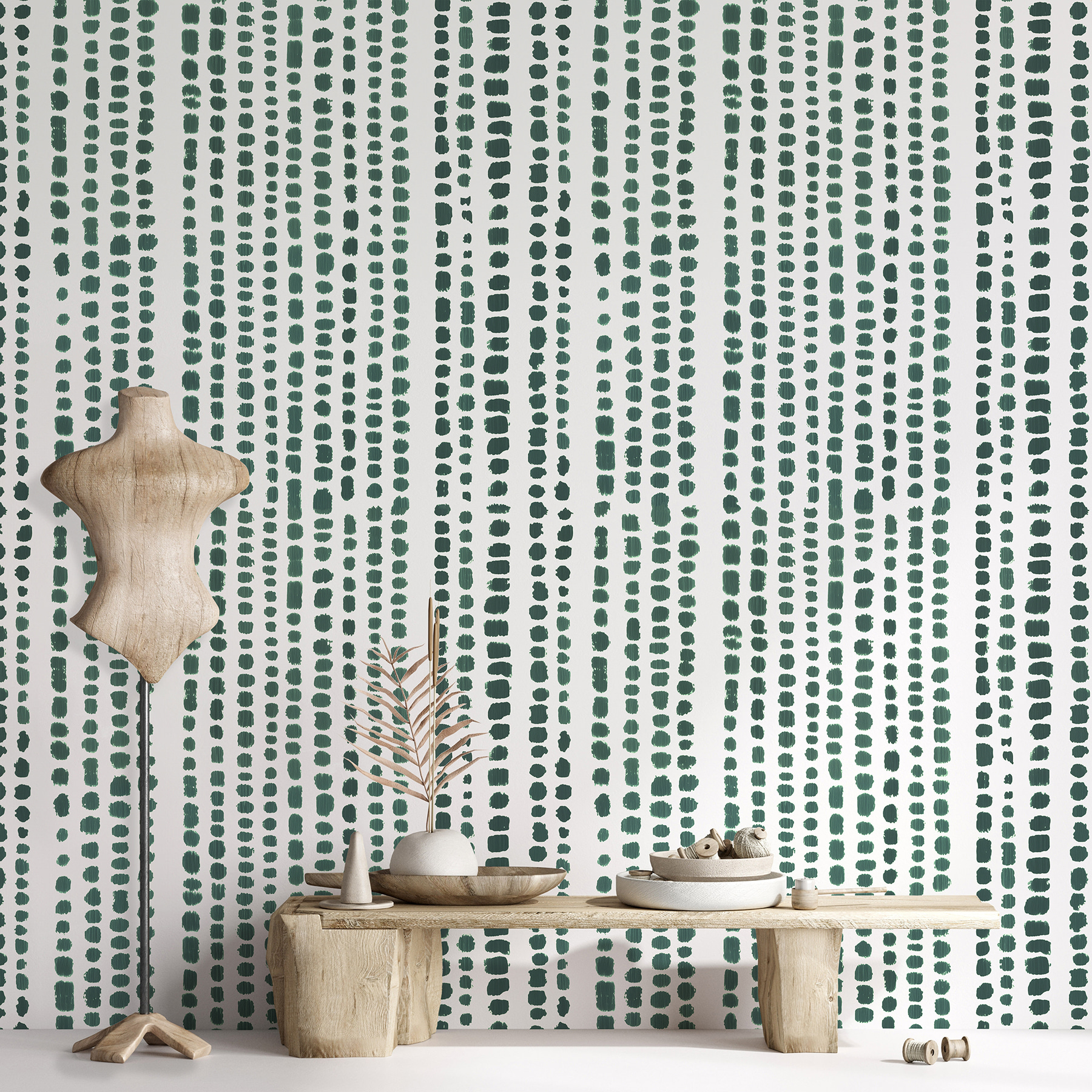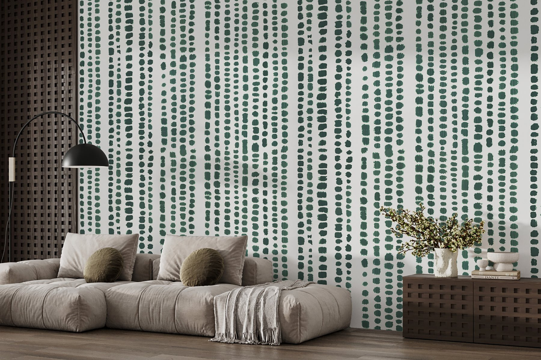 ¿Sabe esos días en los que sólo quiere refrescar una habitación, pero no quiere algo demasiado estridente o loco? Este mural de pared “Patrón verde y blanco” puede ser justo lo que necesita. Tiene un ambiente suave con sus suaves puntos y rayas verdes, como un código de barras inspirado en la naturaleza, extravagante pero maravillosamente relajante. Imagina despertarte cada mañana con esta deliciosa mezcla de geometría simple y tonos naturales. Es como tener un pedacito de calma en la pared, perfecto para crear un espacio naturalmente acogedor. Resulta especialmente acogedor para un rincón de lectura o como fondo de oficina. Tiene esa mezcla equilibrada de ser visualmente interesante sin abrumar los sentidos. Ah, y el suave ritmo de esos puntos es casi meditativo.