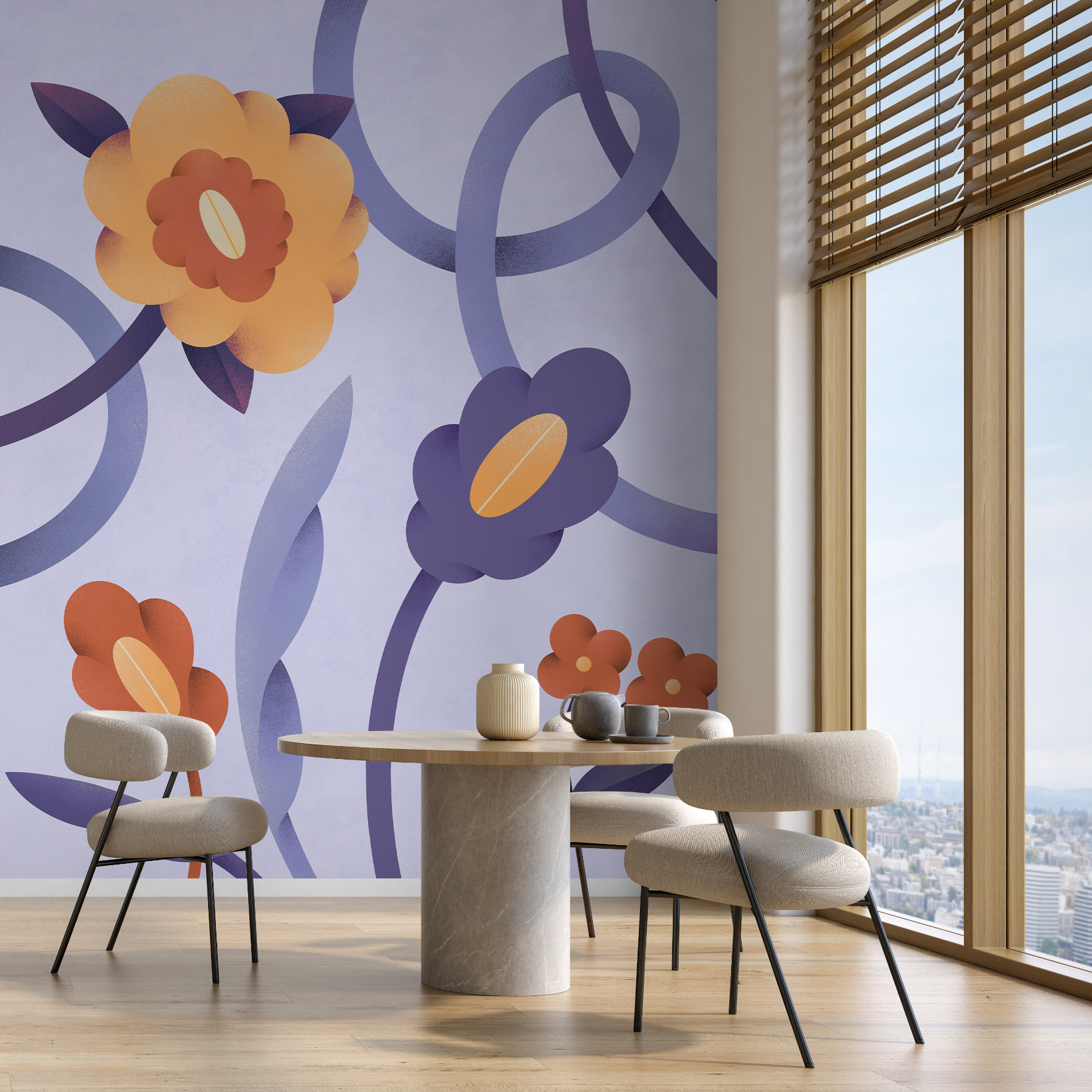 Estas “flores monstruosas” añaden un toque divertido y caprichoso, dando vida al espacio. Perfecto para un salón que necesita un toque de personalidad o un dormitorio que necesita un toque de estilo. No es sólo un mural, es una obra de arte que hará que volver a casa sea un poco más especial, e incluso que te inspire una sonrisa cada día. ¿Listo para ese toque de color y diversión?