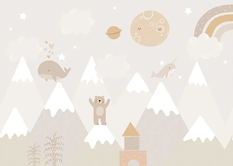 Este encantador mural de pared “Ballena de dibujos animados con estrellas” es como entrar en un sueño caprichoso. Perfecto para la habitación de un niño, la guardería o cualquier espacio lúdico, aporta un ambiente acogedor y mágico que es a la vez relajante y divertido. Imagina a tus pequeños durmiéndose bajo una luna sonriente, con simpáticas ballenas y narvales flotando entre las estrellas: ¡pura magia de cuento para dormir! Los suaves tonos pastel y los tiernos personajes crean un ambiente sereno y acogedor, que lo convierte en un maravilloso telón de fondo para acurrucarse o jugar. Disfruta de su encanto y deja que esta encantadora escena despierte la alegría y la creatividad en tu espacio.