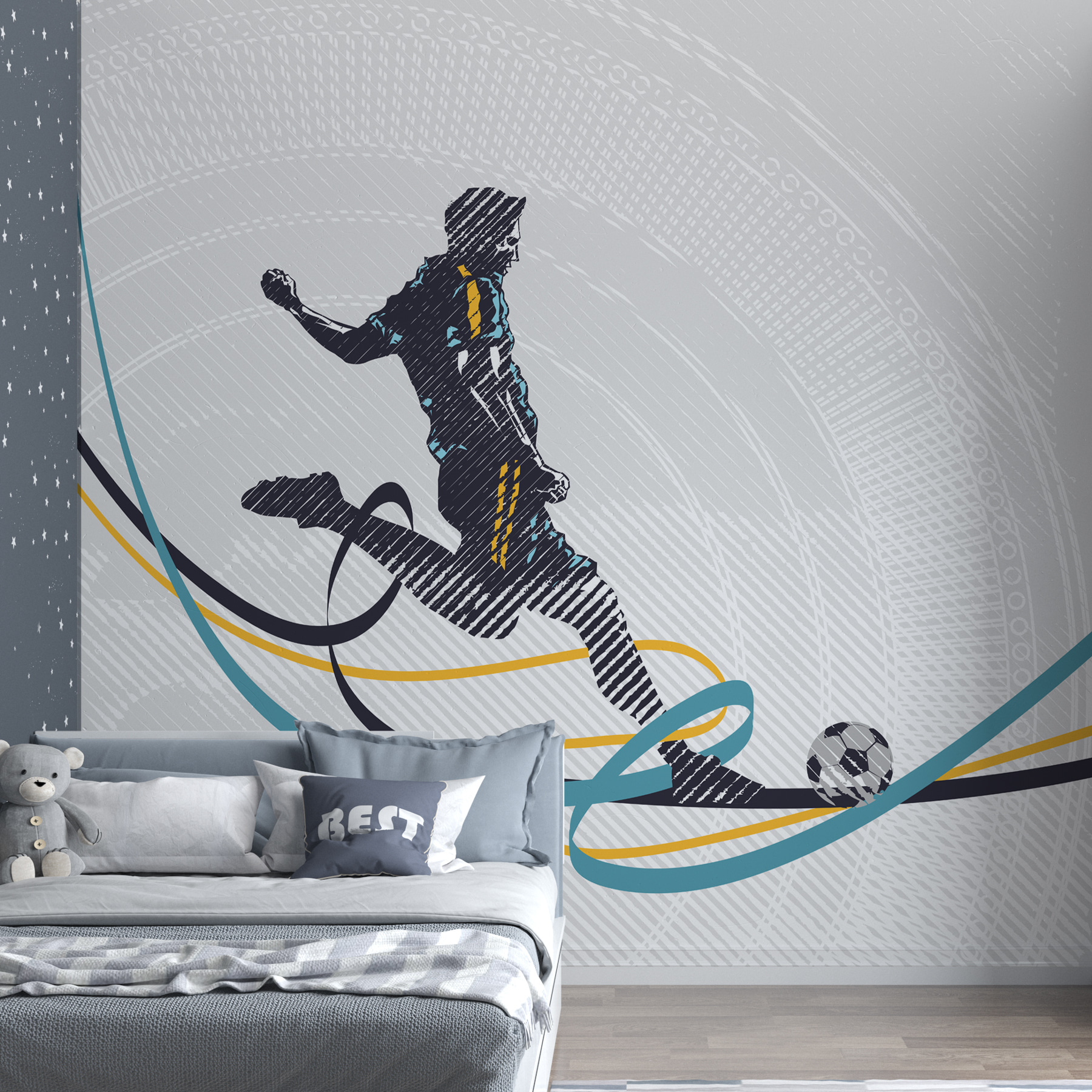 La mezcla de líneas abstractas y colores vibrantes le da un aire fresco y moderno que no deja de ser cálido y acogedor. Es como capturar para siempre un momento deportivo perfecto. Y, oye, no tienes que preocuparte por marcar en tu juego de decoración: ¡este mural te pondrá definitivamente en cabeza! Las salpicaduras de color hacen que todo resalte. Perfecto para cualquier aficionado al fútbol o para alguien a quien simplemente le guste una buena foto de acción.