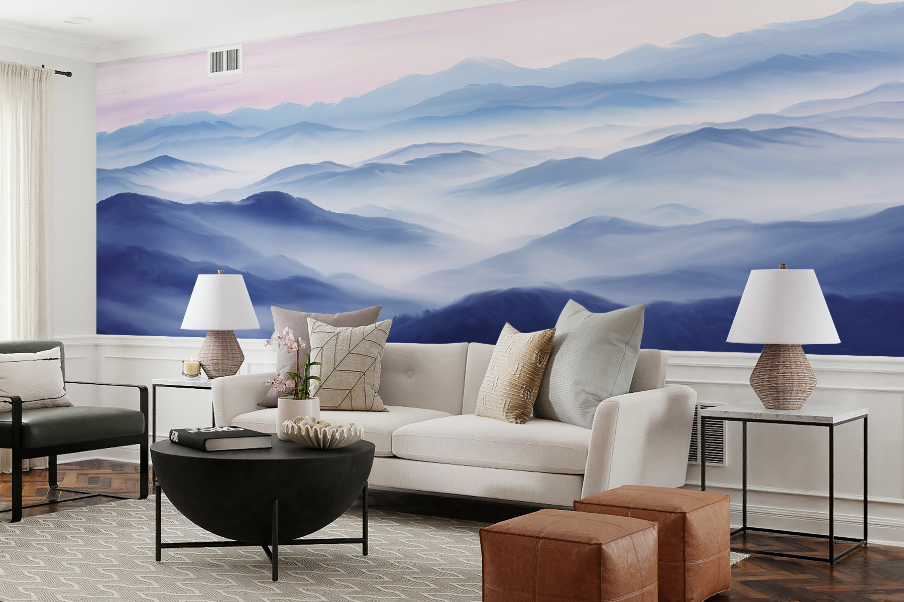 Imagine convertir una habitación en una escapada tranquila con este impresionante mural de pared “Paisaje de montañas con niebla”. Es como contemplar un horizonte infinito donde los picos suaves y brumosos se funden unos con otros. Si la serenidad tuviera una obra de arte, sería ésta. Perfecta para esos días en los que quieres sentir la calma de las montañas sin hacer senderismo. ¿No sería de ensueño tomarse el café de la mañana mientras te pierdes en estas capas de azul? Además, es un tema de conversación. Tus amigos te dirán: “¿De dónde lo has sacado?”. Y tú sonreirás.