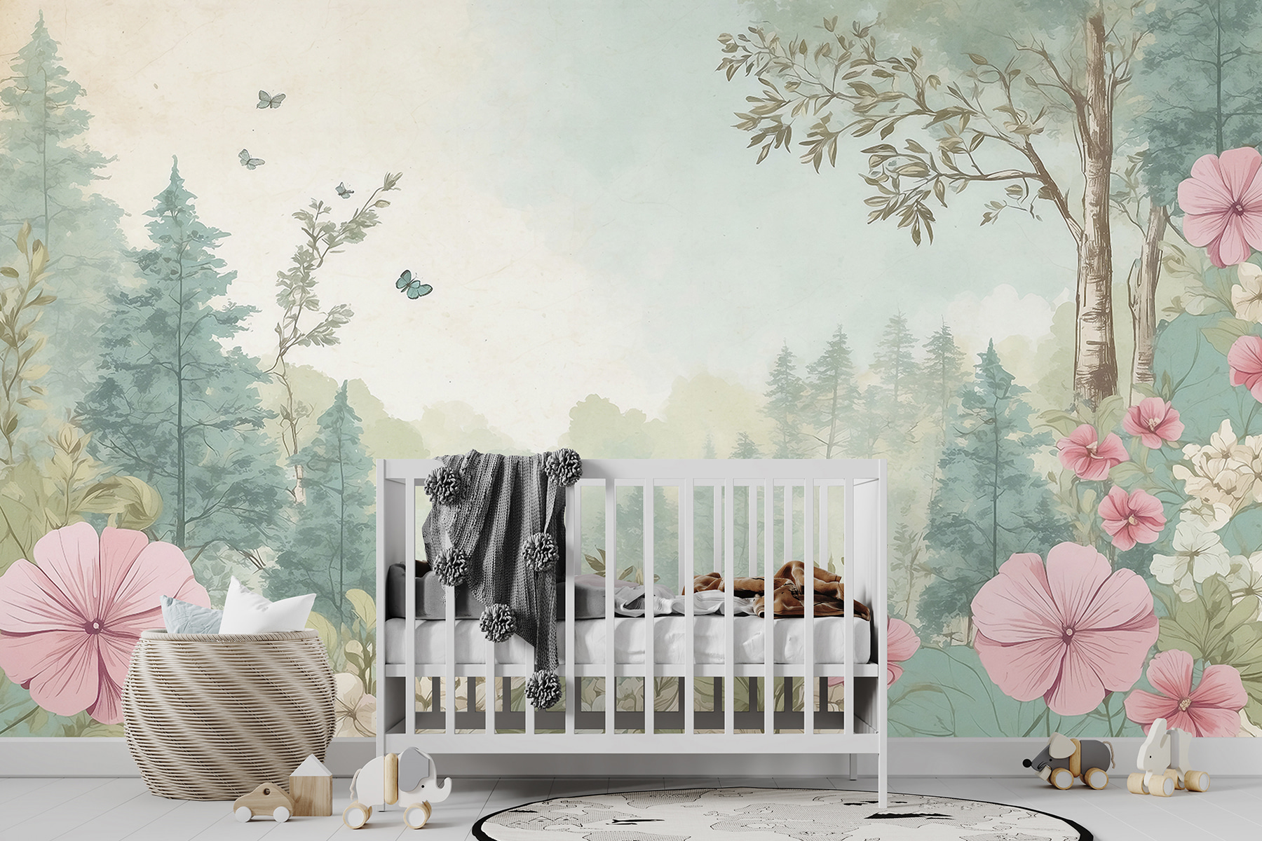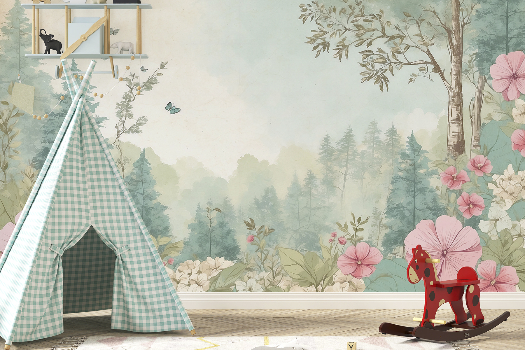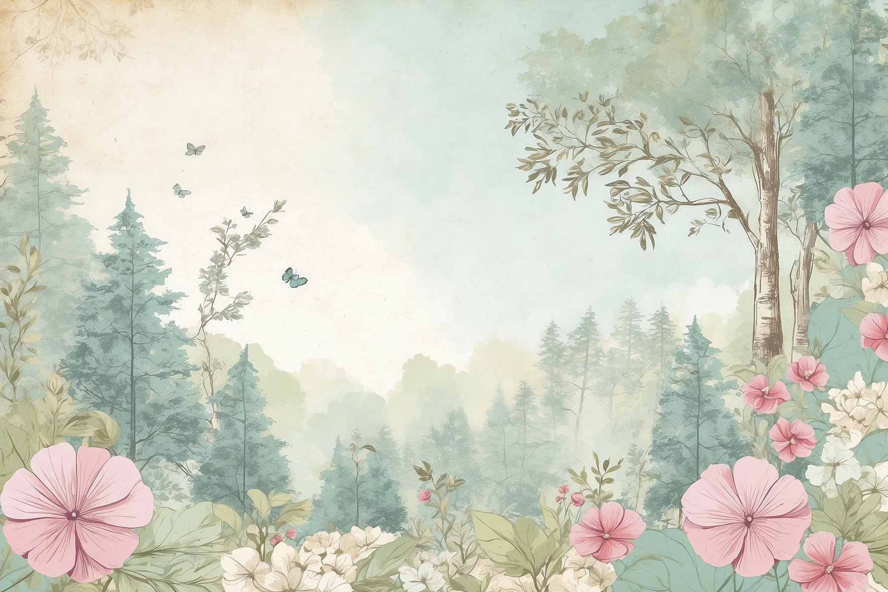 Imagine que entra en su habitación y le recibe este impresionante mural: “Mariposas revolotean en un paisaje sereno”. Las delicadas mariposas y las suaves flores pastel te transportan directamente a un prado de ensueño. ¿Esos suaves verdes y rosas? Es como tener un trozo de un jardín de cuento de hadas en tus paredes. En serio, esta escena inspirada en la naturaleza aporta un ambiente tan relajante, perfecto para desconectar después de un día ajetreado. Además, ¿quién podría resistirse a esos amiguitos revoloteando? No es sólo decoración, es una pequeña escapada en tu propia casa.