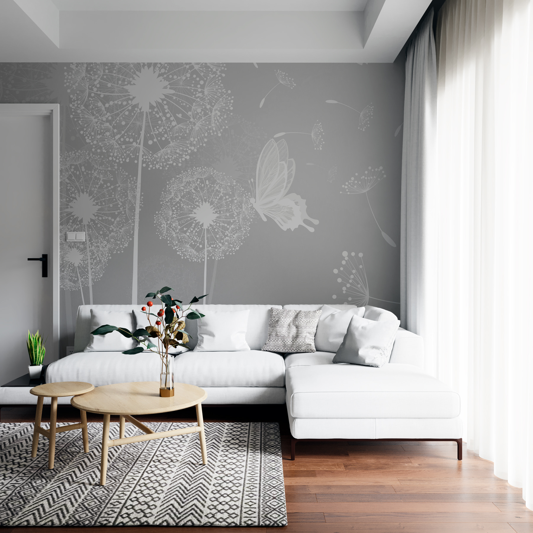 Imagínese esto: Usted está recostado en el salón de su casa, con una taza de té en la mano, y su mirada se desvía hacia la pared, saludada por la visión de caprichosos dientes de león y mariposas revoloteando. Este mural, cuyo encantador nombre es “Dientes de león blancos con mariposas volando”, transforma tu espacio en un refugio aireado y sereno. Los delicados dientes de león, con esas mariposas de ensueño, añaden un toque de la magia de la naturaleza en el interior de su hogar. Perfectas para cualquier amante de la naturaleza que desee un poco de belleza serena, cambian las reglas del juego. Es como pasar un suave día al aire libre, pero en la comodidad de tu hogar. Acogedor y cautivador, un verdadero estimulante del estado de ánimo. Sumérgete en la relajación cada vez que lo veas, ¡incluso puedes pedirle un deseo a un diente de león!