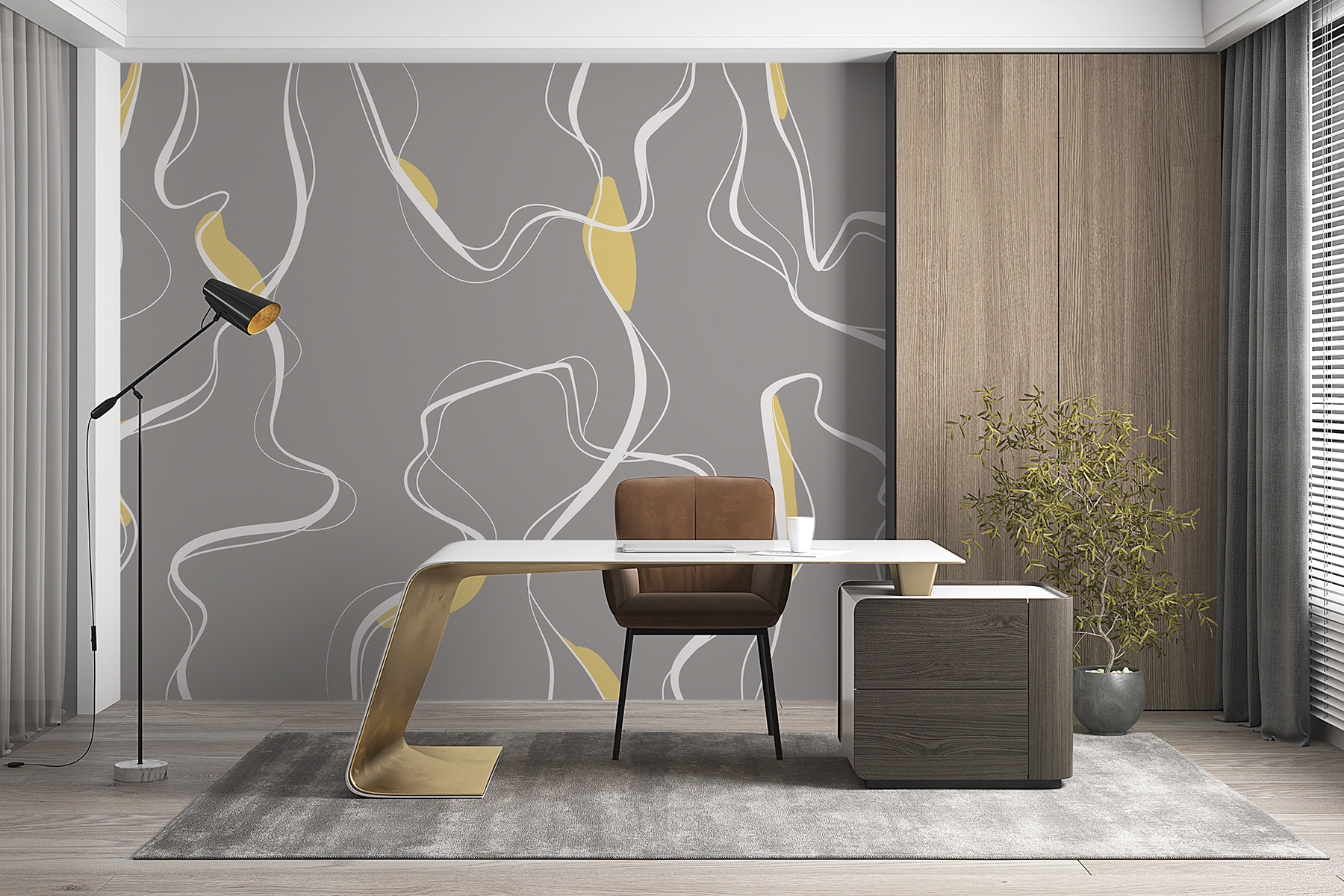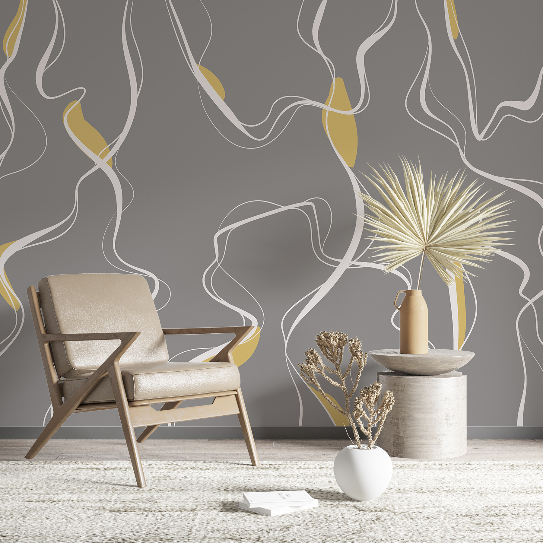 Imagine transformar su espacio con este mural chic, “Líneas blancas sobre fondo gris”. Es abstracto y a la vez muy nítido, perfecto para quienes aprecian un toque moderno en su decoración. Las líneas blancas que fluyen casi parecen corrientes fluviales, añadiendo un efecto calmante a cualquier habitación. Es como si hubieran capturado una danza serena sobre un fondo tranquilo.