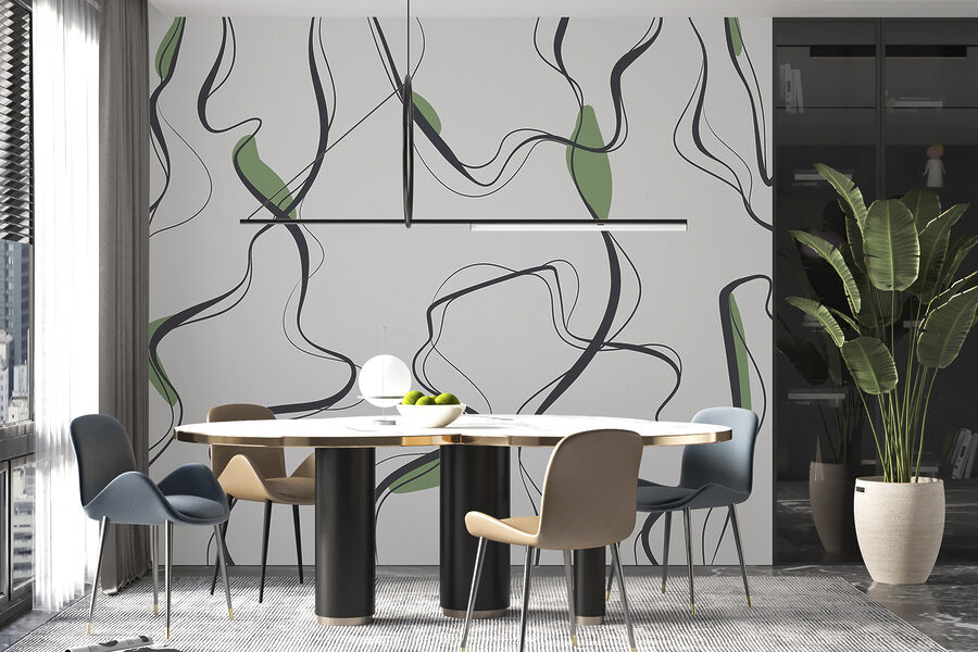 ¿Alguna vez has pensado que a tus paredes les vendría bien un poco más de dinamismo? Echa un vistazo a este genial “Mural de pared de diseño verde y negro”. Es como dar un toque de naturaleza y arte a tu hogar en un solo movimiento. La mezcla de líneas abstractas y toques frondosos te llamará la atención cada vez que pases por delante. Imagínese tomando su café matutino con esta belleza en la pared: hay algo calmante y energizante a la vez. Es perfecto para los que adoran las vibraciones modernas y de diseño pero quieren un pequeño guiño a la naturaleza. Te garantizamos que tus amigos te preguntarán por él.