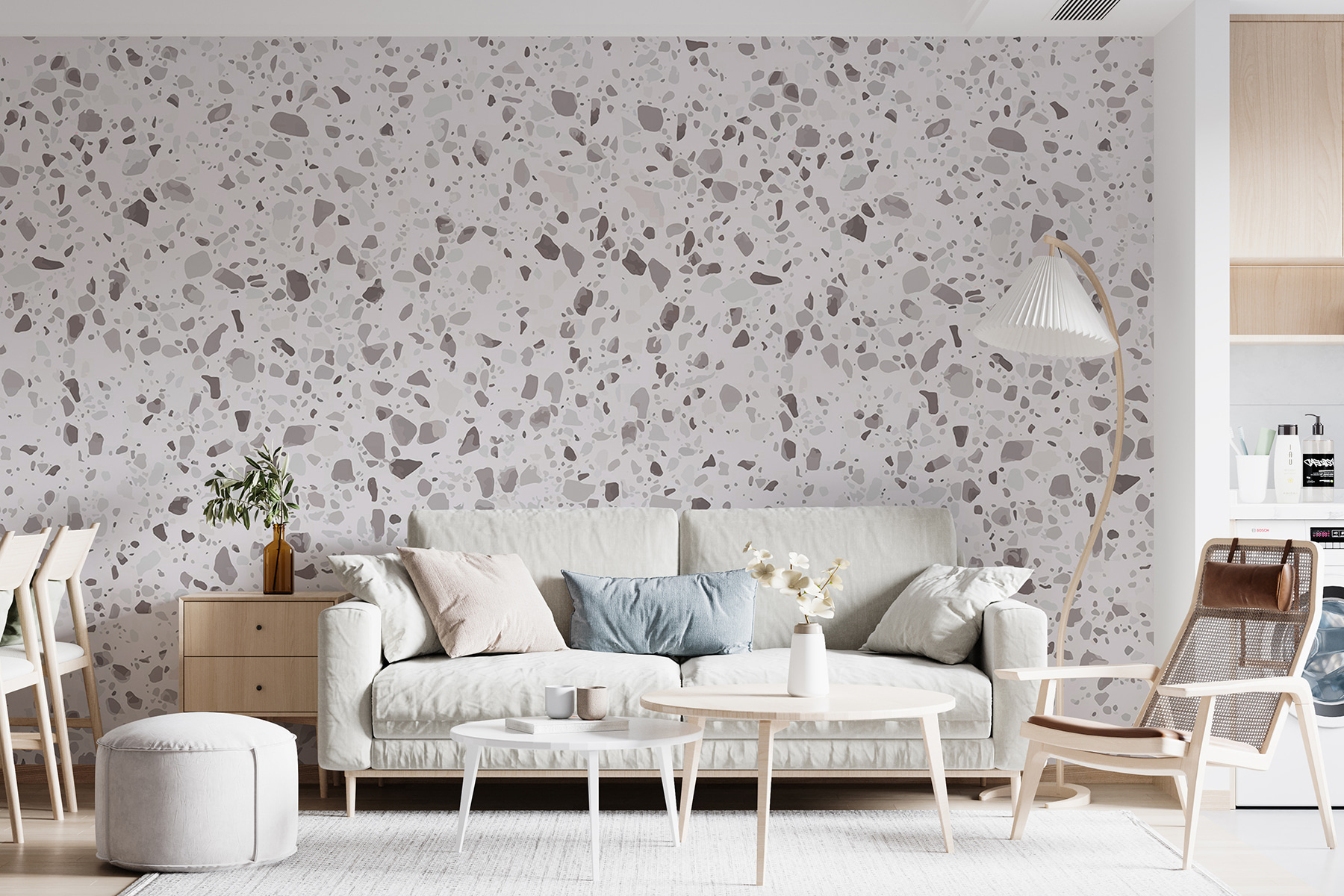 ¿Alguna vez ha entrado en una habitación y se ha sentido… tranquilo? Eso es lo que este mural de pared “Superficie moteada en blanco y gris” aporta a su espacio. Es una especie de versión chic de Terrazzo, con sus suaves motas grises y blancas que crean un ambiente sutil pero elegante. Imagíneselo en su salón o incluso en un elegante despacho. Tiene ese aire fresco y desenfadado, sin esforzarse demasiado. Limpio, moderno y un poco artístico, es perfecto para crear esos momentos de zen. Además, es versátil y combina bien con casi cualquier estilo de decoración. Imagínate un café matutino con este telón de fondo… es la sensación perfecta, ¿verdad?