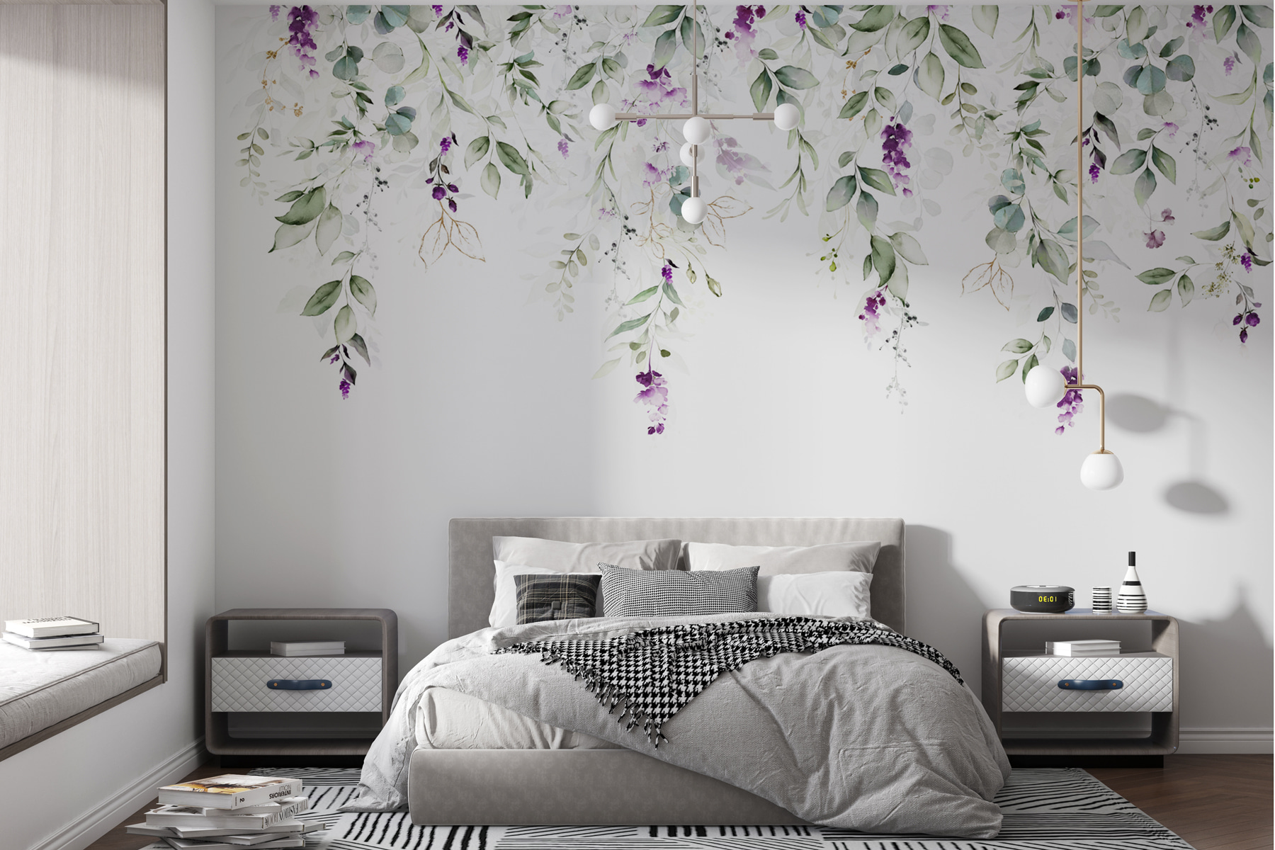 ¿Quiere alegrar su espacio con un toque de naturaleza? Echa un vistazo a este encantador mural de flores moradas sobre un fondo blanco inmaculado. Tiene este suave ambiente de acuarela que te hace sentir como si estuvieras en un tranquilo jardín. Imagínate que te despiertas cada día con esta imagen tan bonita: te levanta el ánimo, ¿verdad? Los tonos púrpuras resaltan lo suficiente como para atraer la atención sin resultar abrumadores. Perfecto para cualquier habitación que necesite un poco de vida y color, este mural combina a la perfección con todo tipo de decoración. Es ideal para añadir un suave toque botánico a su hogar. ¡Simplemente de ensueño!