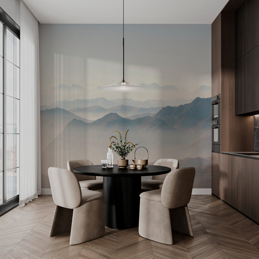 Transforme cualquier espacio en una escapada serena con este impresionante mural de una cadena montañosa envuelta en niebla. Imagínese tomando un café en una perezosa mañana de domingo mientras contempla estos suaves picos ondulados. Es como unas minivacaciones en las paredes. Los colores apagados evocan una sensación de calma, perfecta para una acogedora sala de estar o un tranquilo dormitorio. Imagínese este mural creando un telón de fondo que despierte sueños de aire fresco y excursiones por la montaña, todo ello sin necesidad de botas de montaña. Es una decoración que cuenta una historia, llevando la naturaleza al interior con un susurro de aventura.