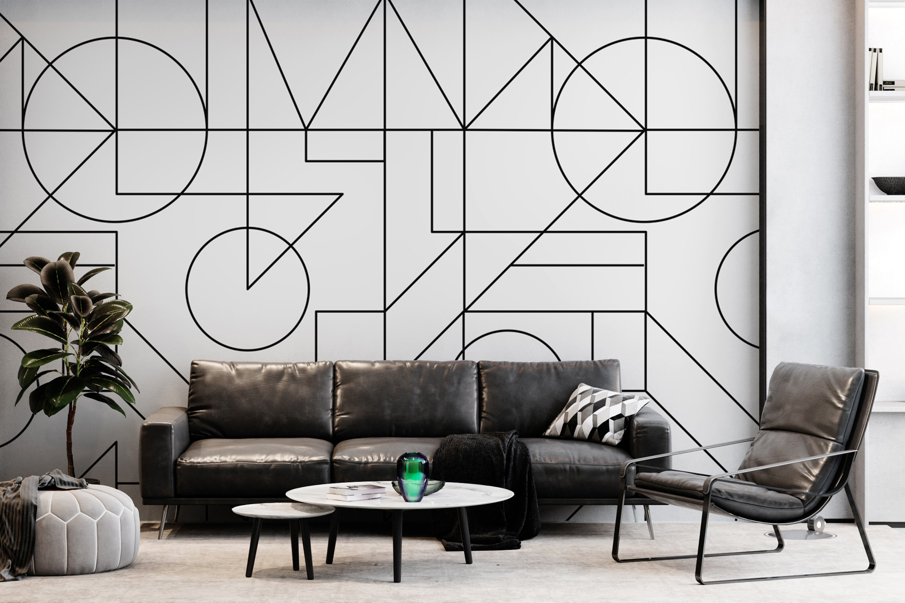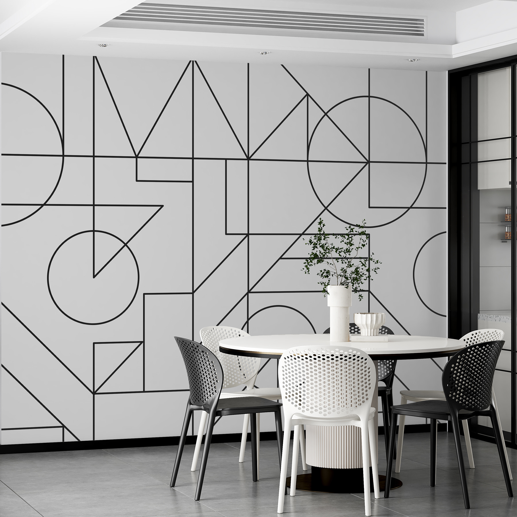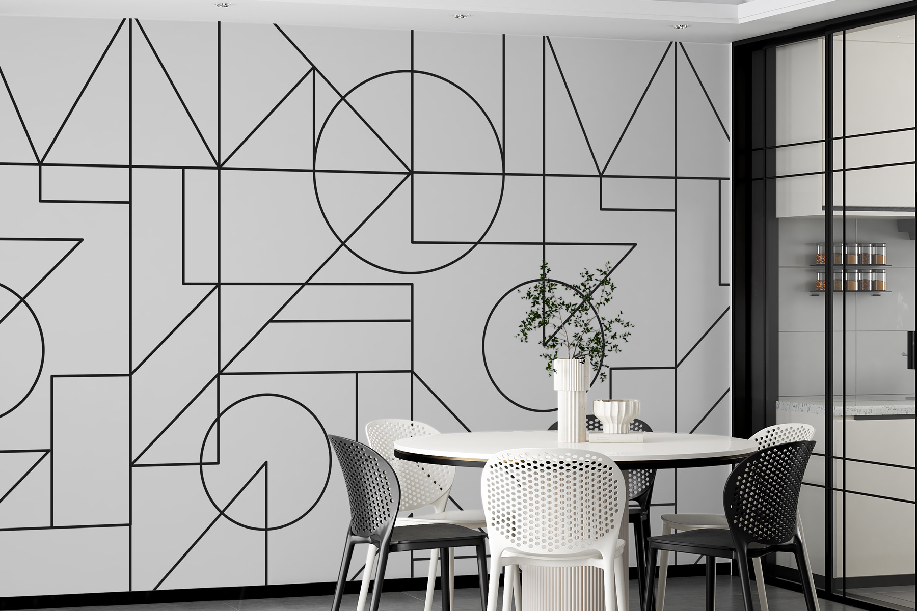Es ideal para cualquier espacio, ya sea el salón, el despacho o incluso ese pasillo vacío que pide a gritos un poco de amor. ¿La combinación de colores blanco y negro? Puro clasicismo. Combina sin esfuerzo con cualquier estilo de decoración. Además, hay algo tan relajante en los diseños geométricos: aportan una sensación de orden y equilibrio, casi como si te cubrieran las espaldas en este mundo caótico. Así que adelante, deja que este mural transforme tu pared en una obra maestra.