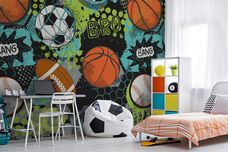 Lleva un poco de diversión animada a tu espacio con este “Mural de pared Collage deportivo con colores vibrantes”. Perfecto para niños o adolescentes, es como un enfrentamiento deportivo justo en su pared, ¡sin vuvuzelas zumbando, te lo prometo! Vibrantes azules, verdes y toques de ese tono naranja del baloncesto salpican la escena, haciendo que parezca un partido en pleno apogeo. Los jóvenes aficionados al deporte estarán encantados, pero incluso los que no lo son pueden negar lo chulo y enérgico que parece. Además, tiene palabras como “Bang” y “Bro” mezcladas, ¡es casi como si la pared te respondiera! Colócalo en un dormitorio, una sala de juegos o incluso en el espacio de una mujer joven (¿quién dijo que los deportes no son fabulosos?) y verás cómo toda la habitación se llena de acción y emoción. Perfecto para cualquiera que quiera un toque de dinamismo y una pizca de alegría en su decoración.