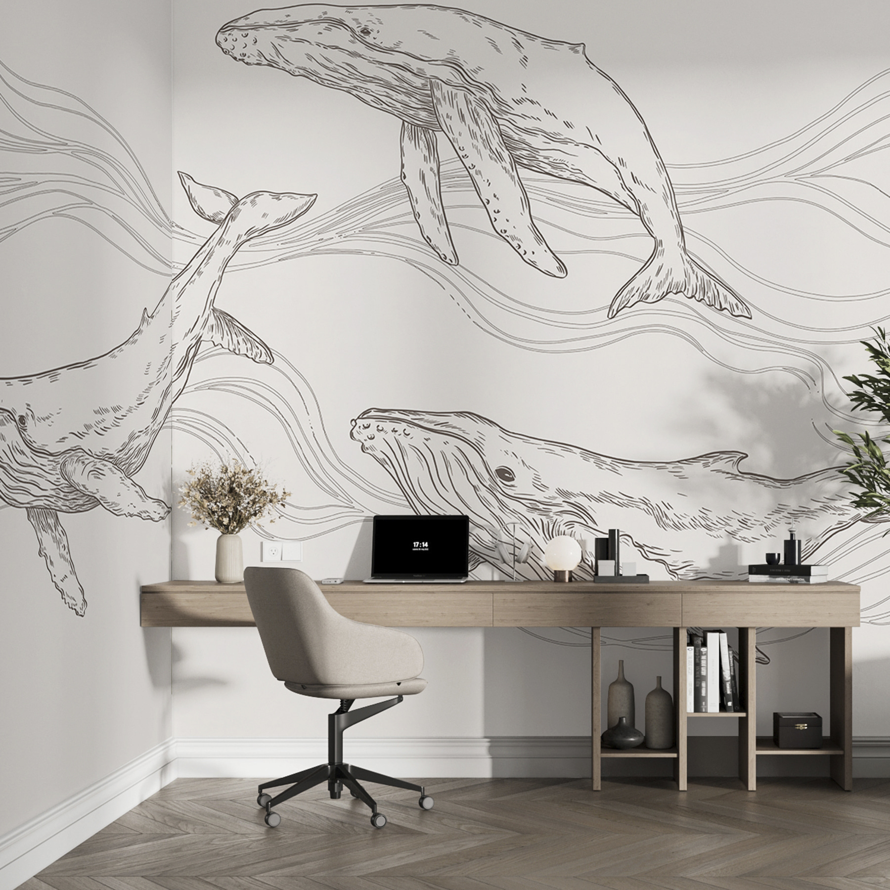 Imagine despertarse cada día en una habitación que parezca un tranquilo refugio submarino. Este mural de pared “Ballena y ballena jorobada” lleva la serena gracia del océano directamente a su hogar. Perfecto para los amantes de los animales, los entusiastas del océano, o simplemente para cualquiera que quiera una pizca de capricho y maravilla en sus paredes. Los detallados dibujos de estas majestuosas criaturas parecen bailar, casi como si te invitaran a participar en su ballet submarino. Por no hablar de que es un tema de conversación infalible: todo el mundo se asombrará de su increíble aspecto. Piénsalo: un poco de la tranquilidad de la playa sin arena por todas partes.