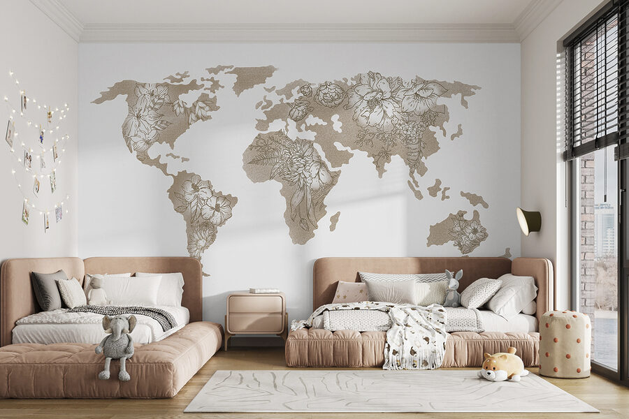 ¿Tienes un pequeño trotamundos en casa o simplemente te gusta la decoración única? Echa un vistazo a este “Mural Mapa del Mundo”. No es el típico mapa, ¡piensa en la tierra unida al arte floral! Imagina a tus hijos soñando despiertos con aventuras alrededor del mundo mientras contemplan esta belleza en la pared. Los nítidos detalles botánicos están pegados a los continentes, haciendo que la geografía parezca una galería de arte. Perfecto para la habitación de un niño o para cualquier espacio en el que la naturaleza se una a la pasión por los viajes. En serio, llama la atención y es un tema de conversación a la vez. Perfecto para despertar la curiosidad o mostrar tu amor por el mundo de la forma más elegante y artística.