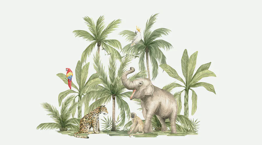 Transforma cualquier habitación en una vibrante aventura en la jungla con este caprichoso mural de pared que muestra animales juguetones entre palmeras que se mecen. Imagina que entras en un espacio donde te saludan un elefante, un mono descarado y un colorido loro: ¿quién no sonreiría? Perfecto para habitaciones infantiles o incluso para un rincón acogedor de tu salón, añade un toque de encanto natural. Además, ¿quién podría resistirse al relajante ambiente de exuberante vegetación? Siéntate y deja que esta escena selvática desate la alegría y la risa, convirtiendo los momentos cotidianos en miniaventuras. Déjate llevar por el lado salvaje, ¡aunque sólo sea por un momento!