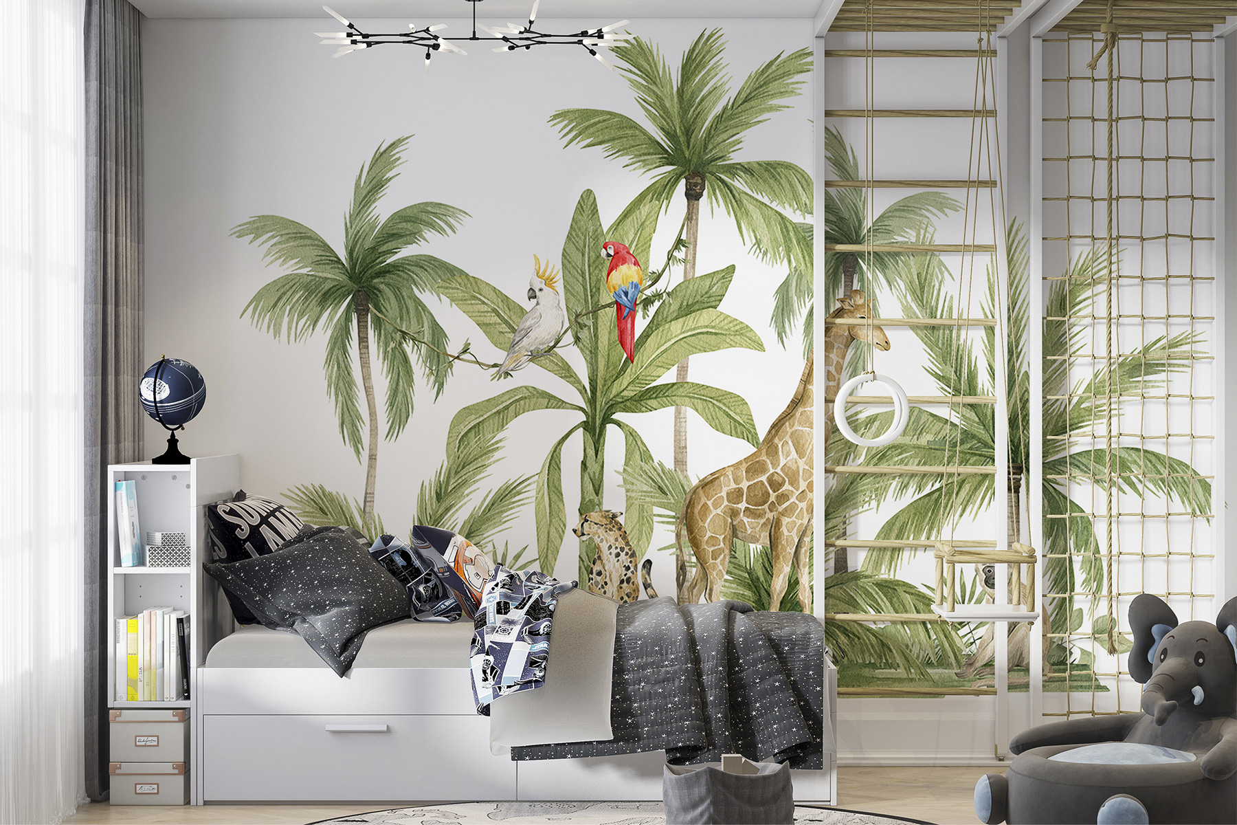 A los niños les encantará, y podrán soñar historias sobre cómo hacerse amigos de los animales de la selva. También es fabulosa para crear un ambiente juguetón y caprichoso sin ser demasiado. Incluso a los adultos les puede parecer relajante, como una pequeña escapada a un paraíso tropical en casa. Los tonos suaves y terrosos combinados con detalles vivos aportan el equilibrio justo de tranquilidad y vivacidad.