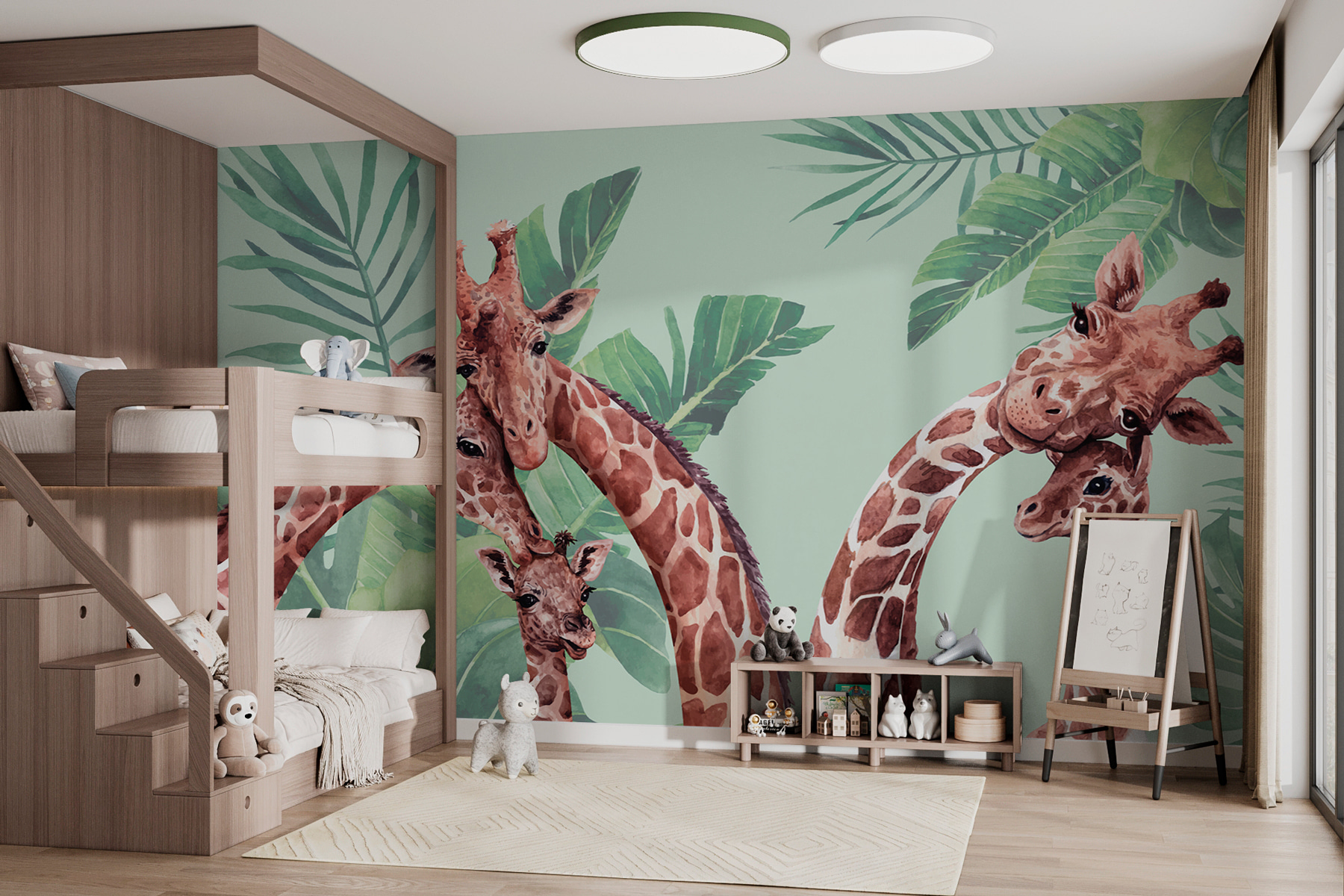 Imagínese entrar en una habitación y ser recibido por un alegre grupo de jirafas sobre un exuberante fondo verde. Este mural es como traer un alegre trozo de safari a su hogar. Perfecto para habitaciones infantiles, cuartos de niños o cualquier espacio que necesite un toque divertido inspirado en la naturaleza. Cada jirafa, con su adorable y gentil expresión, parece decir: “¡Hola, amigo!”. Es casi como si estos larguiruchos se asomaran desde una jungla, añadiendo una sensación de aventura y capricho. Si conoces a alguien a quien le gusten los animales o quiera infundir un poco de naturaleza salvaje en su decoración, este mural es una elección fantástica. Además, ¿quién no sonreiría cada vez que ve a estos gentiles gigantes? Ya sea porque los niños se imaginan jugando bajo los árboles o porque los relajantes tonos verdes alivian un largo día, este mural es más que un simple papel pintado: es una sensación.