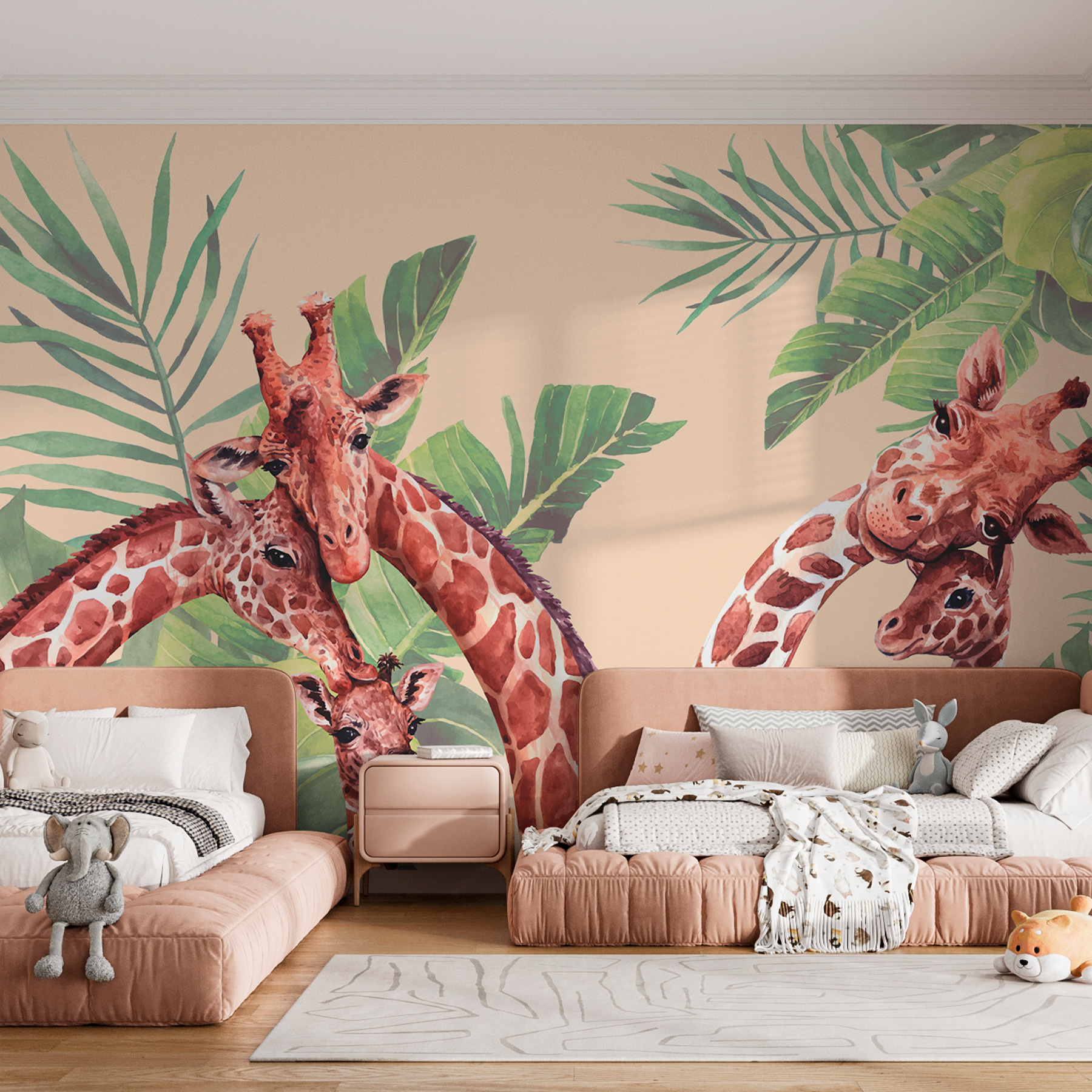 Imagínese llegar a casa a una sala de estar donde las jirafas le saludan todos los días. Este mural de pared “Grupo de jirafas con hojas” le envuelve en un juguetón abrazo de gigantes altos y gentiles, haciendo que sus paredes cobren vida con encanto y fantasía. Perfecto para habitaciones infantiles o cualquier espacio que necesite un toque de encantadora vida salvaje. Con verdes vibrantes y tonos terrosos de jirafa, parece un mini safari en casa. Imagina tomarte un café por la mañana, sentir las vibraciones de la jungla e incluso poner nombre a tus nuevas jirafas. Convierte cualquier pared en una aventura. 🌿🦒