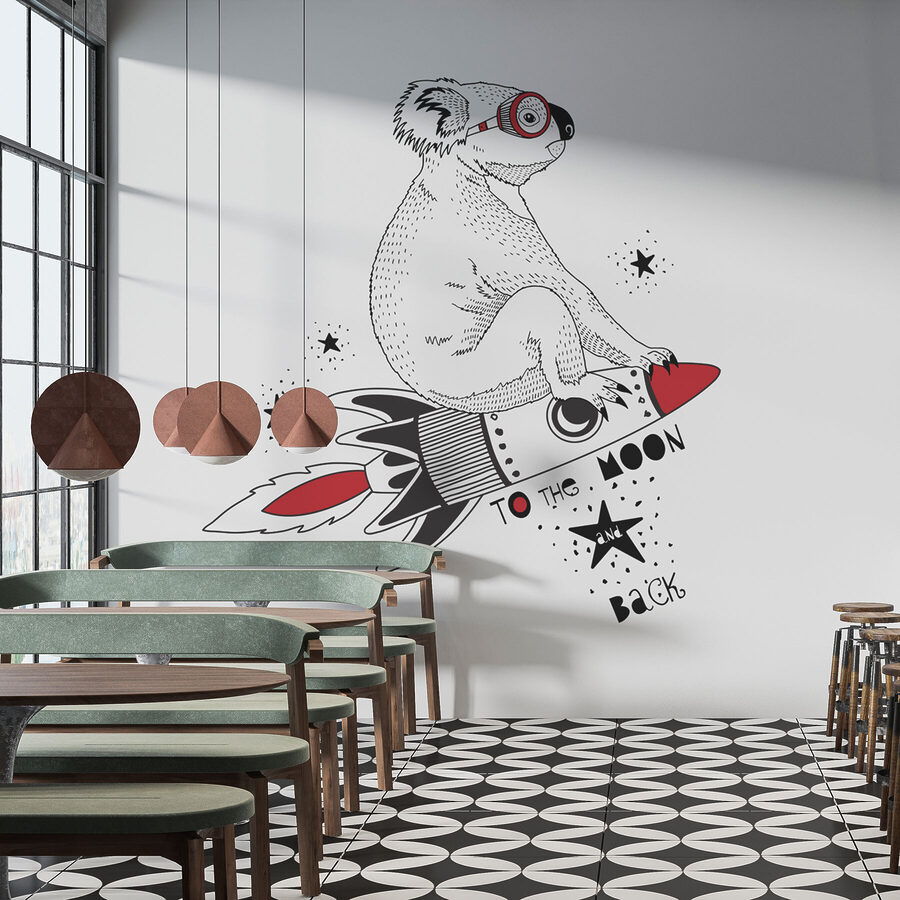 Echa un vistazo a este adorable mural de pared titulado “Koala en un cohete”. Perfecto para añadir un poco de encanto caprichoso a cualquier habitación, éste encaja perfectamente en categorías como Animales, Niños, Galaxia, Bebés… ya te haces una idea. Imagina un koala con gafas de aviador, montado en un cohete que se dirige a la luna. De repente, el espacio de tu hijo se convierte en un trocito de una divertida galaxia. Es el tipo de cosa que da el pistoletazo de salida a los cuentos antes de dormir, ¿verdad? Es deliciosamente extravagante y seguro que iluminará esos ojitos y despertará una gigantesca imaginación. Imagínate los “oohs” y “aahs” de todos los que lo vean. Además, es una forma fantástica de alimentar los sueños de exploración y aventuras espaciales. Con este mural, estarás decorando sueños, literalmente. ¡Hasta la luna y de vuelta!