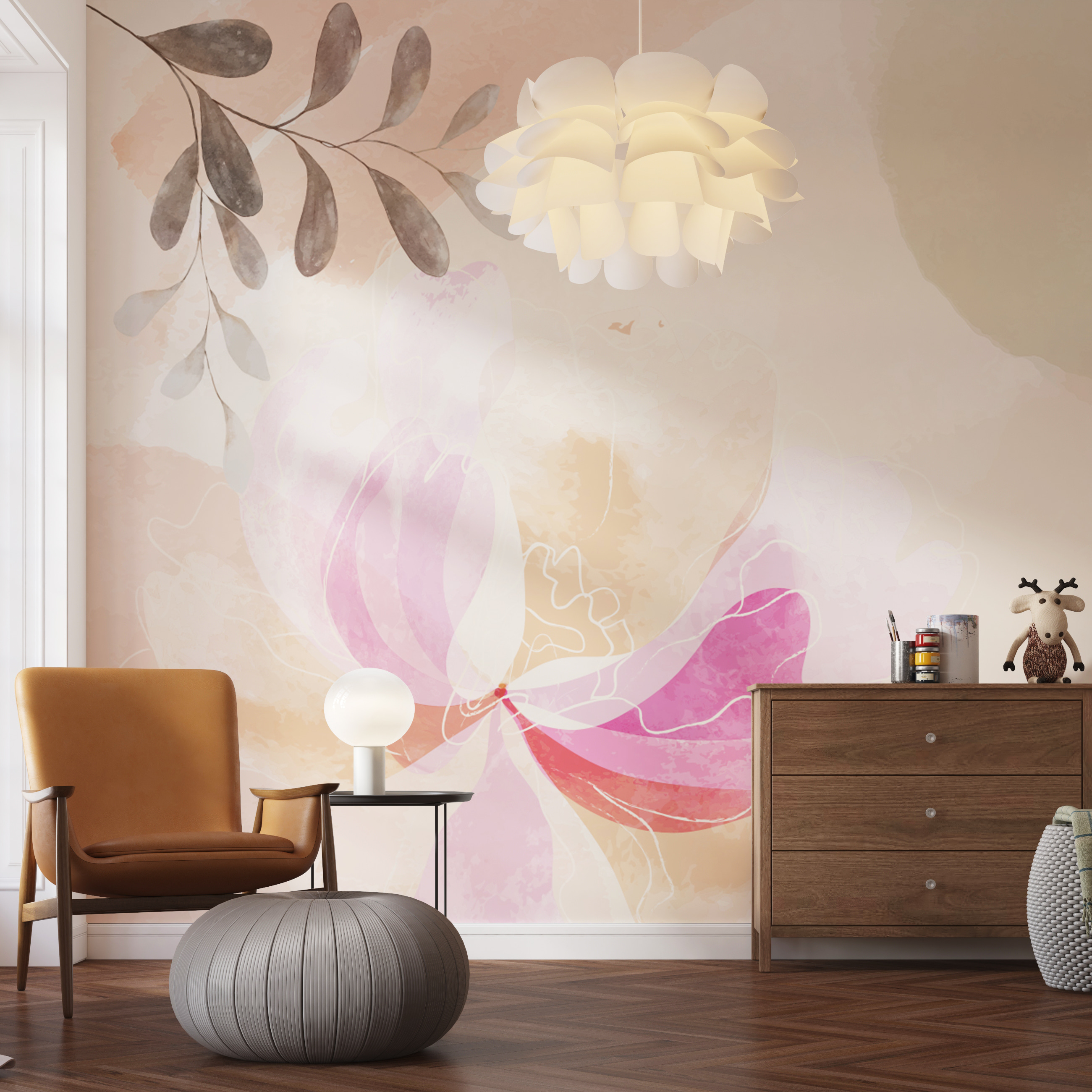 Imagínese entrar en una habitación y sentir una calma instantánea, como si acabara de entrar en un jardín de acuarelas de ensueño. Eso es exactamente lo que hace este mural de pared “Delicate Floral Watercolor”. No es un estampado floral cualquiera; piense en peonías suaves mezcladas con hojas delicadas, todo en tonos pastel apagados que susurran tranquilidad. Este mural es perfecto para convertir una pared lisa en un santuario. Ideal para un dormitorio o un rincón de lectura, es como envolver tu espacio en un suave abrazo. ¿No te imaginas acurrucándote con un libro o disfrutando de un tranquilo café matutino? Además, tiene las suficientes vibraciones de naturaleza como para traer el aire libre al interior sin ensuciar. Si te gustan las flores o las acuarelas, no lo dudes. Te quedarás mirándola cada vez que pases por delante, e incluso te perderás en su serena belleza durante un minuto o dos.
