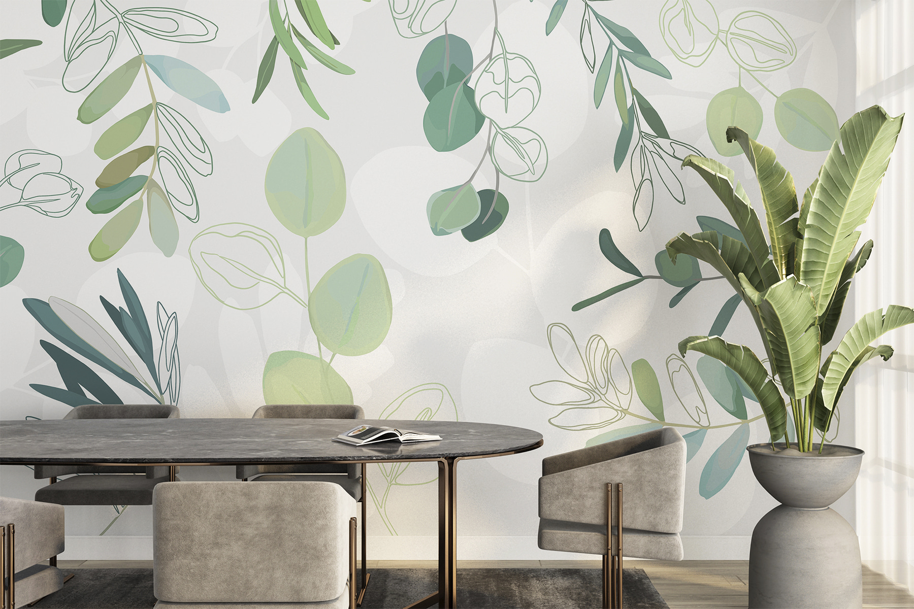 Transforme su espacio en una escapada serena con este encantador mural de hojas verdes sobre un fondo blanco relajante. Imagínese entrar en una habitación que parece un refugio en el bosque. Es perfecto para cualquiera que quiera escapar del ajetreo diario y relajarse en un elegante rincón de la naturaleza, sin los insectos, por supuesto. Los suaves tonos verdes aportan un toque fresco de color, mientras que el estilo artístico aporta un toque chic. Ya sea un acogedor rincón de lectura o una animada zona de comedor, este mural crea una atmósfera acogedora de la que es fácil enamorarse. Además, los invitados te preguntarán dónde has encontrado una pieza tan encantadora. No es sólo decoración, es una inyección de ánimo.