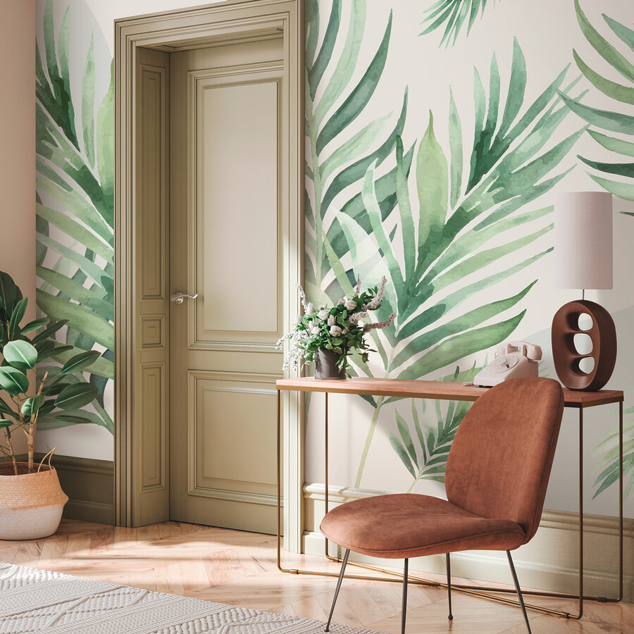 Transforme cualquier espacio en un refugio tropical con este encantador mural de pared de suaves hojas de acuarela. Imagínese despertarse cada mañana con el suave vaivén de las hojas de palmera bailando en sus paredes, como si estuviera de vacaciones en un tranquilo complejo costero. Los sutiles verdes invitan a una sensación de calma, iluminando sin esfuerzo su hogar, ¡sin necesidad de protección solar! Imagina un rincón de lectura acogedor en el que tomar un café mientras contemplas este exuberante paisaje. Es como traer un poco de la selva al interior, pero sin los mosquitos. Perfecto para los que anhelan la naturaleza pero también disfrutan quedándose en casa.