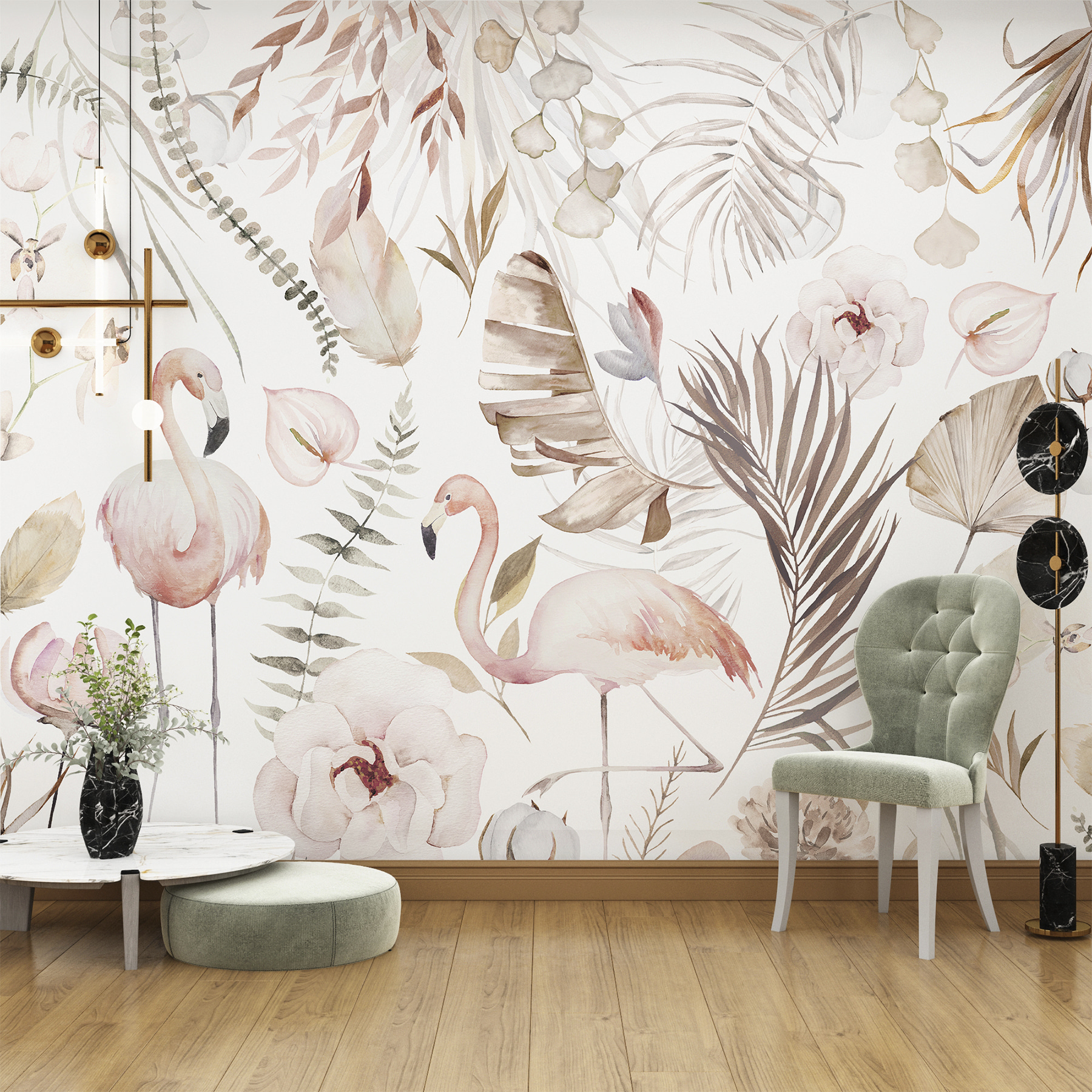 Imagine dar a su espacio una dosis de paraíso, con “Flamencos bailan entre sueños botánicos”. Este mural te transporta a una selva de ensueño donde elegantes flamencos se encuentran con un exuberante jardín de flora exótica. Perfecto para quienes adoran un toque tropical, es como unas minivacaciones en su pared. Los colores suaves y el diseño caprichoso añaden un ambiente sereno, pero juguetón. Puede que incluso sueñes despierto con tardes de sol en la playa. En serio, es un captador de miradas. Ideal para salones, dormitorios o cualquier rincón que necesite un toque de vida y color. Créeme, ¡tus paredes te lo agradecerán!
