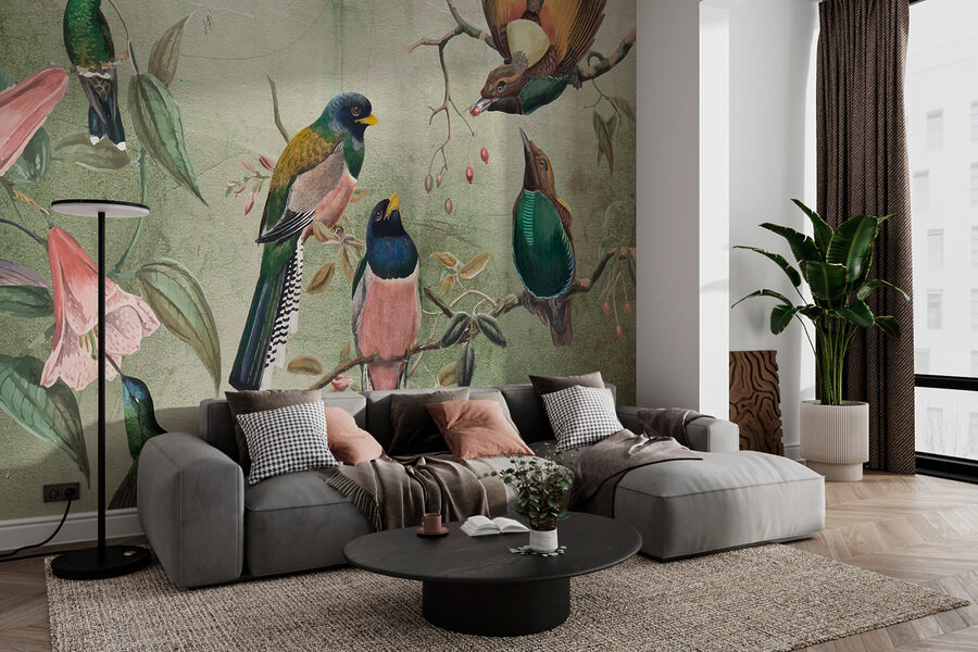 Imagínese despertarse con una alegre serenata de pájaros de colores posados en ramas, ¡sin tener que salir de su acogedora cama! Este mural “Grupo de pájaros en una rama” es como tener un trocito de naturaleza en el salón de casa. La encantadora mezcla de pájaros y flores desprende un ambiente tranquilo, pero animado, que te hace querer servirte una taza de té y sentarte un rato. Perfecto para los amantes de los pájaros o para cualquiera que desee un toque de naturaleza en su hogar. Cada mirada a este mural es un momento de puro deleite. Además, no tendrá que preocuparse de alimentar a estos amigos emplumados.