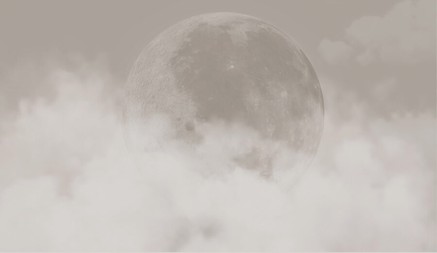 Fotomurales Luna flotando entre nubes brumosas Fotomurales Luna flotando entre nubes brumosas