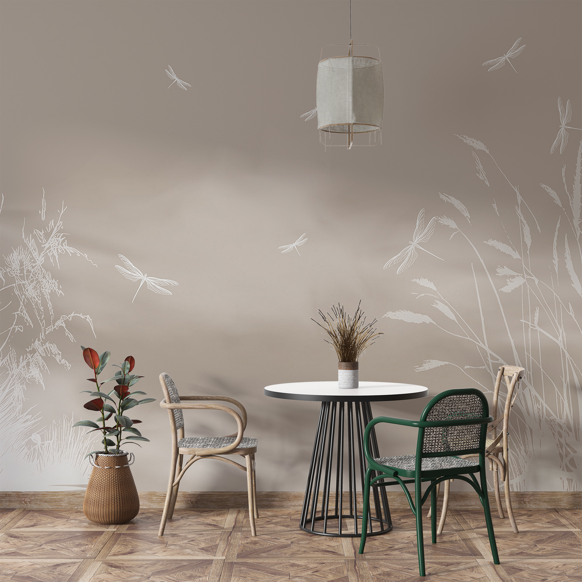 Este mural no es sólo una decoración, es un tema de conversación. Sus amigos entrarán, harán una doble toma y se preguntarán si ha instalado una ventana a un tranquilo prado. Los colores sutiles crean una atmósfera acogedora y aireada, perfecta para cualquier habitación que busque un toque de fantasía y naturaleza. Además, no es necesario tener un pulgar verde aquí, sólo la elegancia pacífica de las libélulas revoloteando. Perfecta para los amantes de la naturaleza o para cualquiera que necesite un soplo de aire fresco en su interior.