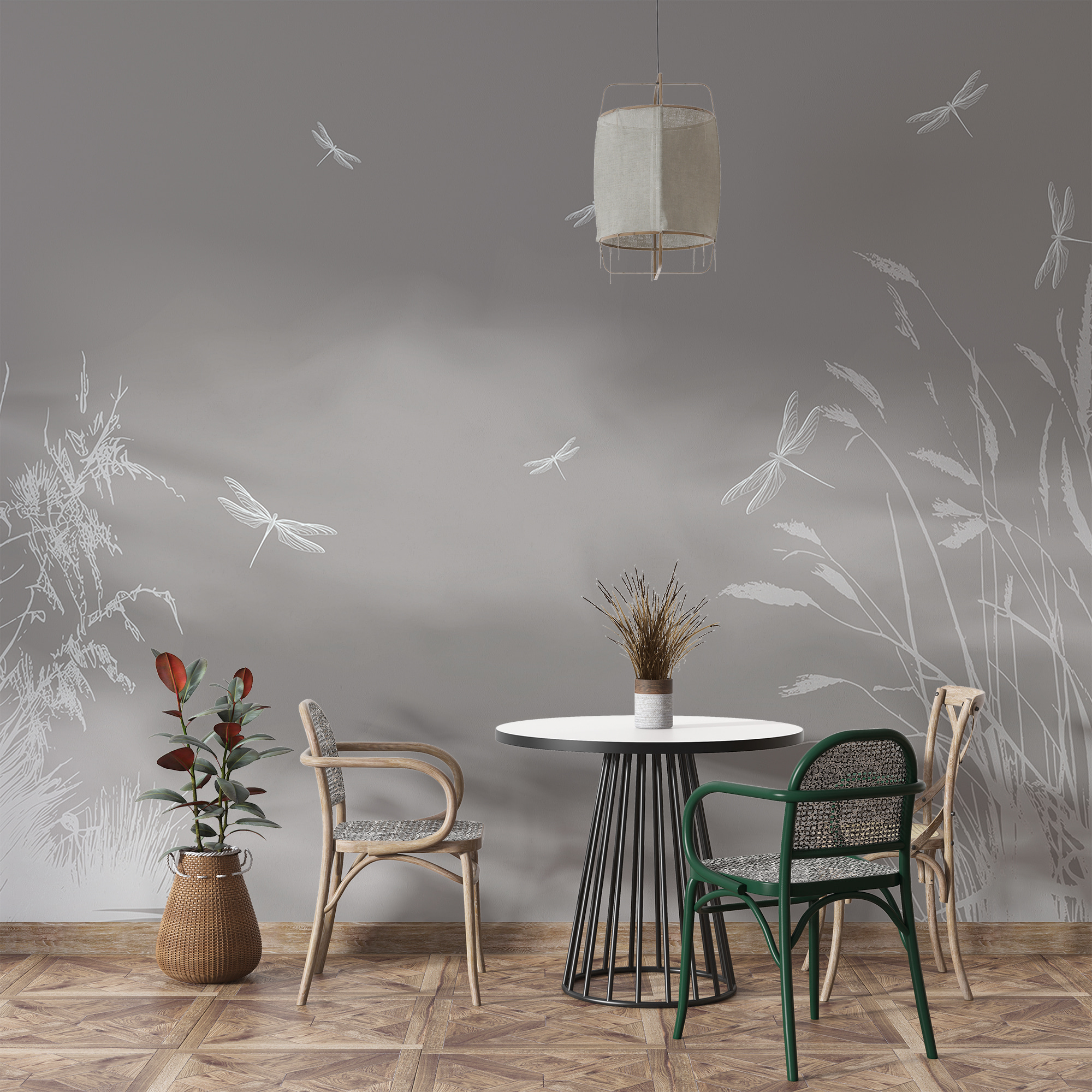 Imagínese esto: entra en su salón y en la pared aparece este fascinante mural de libélulas, como sacado de un sueño. El mural “Libélula blanca con alas” no se trata sólo de añadir arte, sino de aportar un toque de elegancia de la naturaleza a su hogar. Los delicados contornos blancos, casi susurrantes, revolotean sobre un suave fondo gris, evocando sensaciones de paz y tranquilidad, como una tranquila tarde junto a un estanque. ¡Esas libélulas parecen casi listas para levantar el vuelo de la pared! Ideal para los amantes de la naturaleza o para cualquiera que busque añadir un ambiente sereno a su habitación. Es como hacer una pequeña escapada a un tranquilo prado sin salir de casa. Un perfecto tema de conversación y un apacible punto de atracción, todo en un dulce mural.