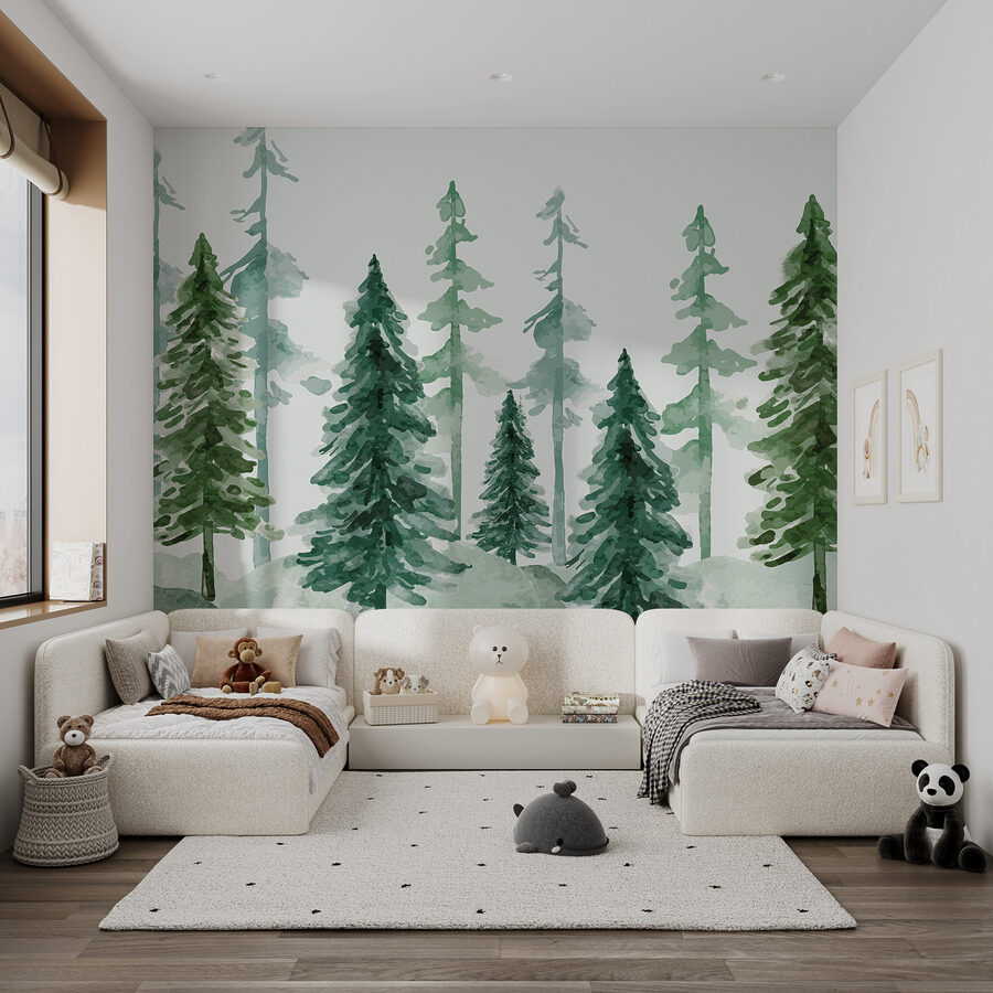 Imagínese adentrarse en un tranquilo bosque sin salir de su salón. Este mural “Bosque siempre verde en tonos de acuarela” aporta un soplo de aire fresco a su espacio. Los verdes suaves y las delicadas acuarelas hacen que parezca que los árboles se mecen suavemente ante sus ojos. Es perfecto para crear un oasis sereno inspirado en la naturaleza en cualquier habitación. Imagínate acurrucándote con un libro bajo el dosel o echando un vistazo a esta escena del bosque mientras tomas el café por la mañana. Es como una pequeña escapada del ajetreo y el bullicio, justo en tu pared. Además, las vibraciones boscosas son muy tranquilizadoras y dan a cualquier hogar un toque terrenal, casi mágico. No te sorprendas si empiezas a soñar con aventuras en el bosque o te sientes inspirado para traer un poco más de naturaleza a tu vida.
