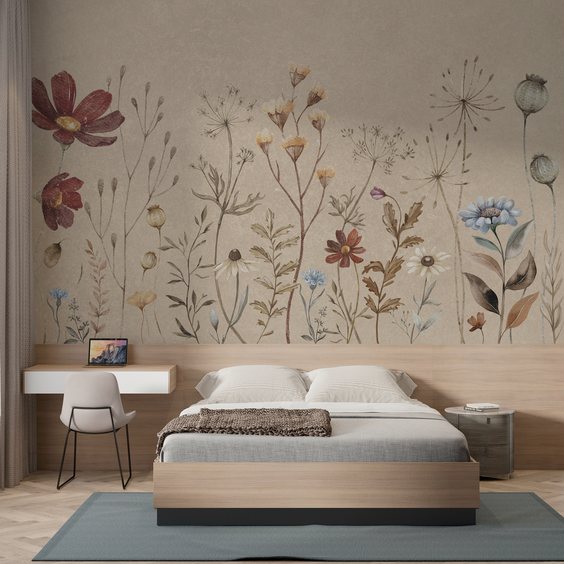 Imagine que entra en su habitación y al instante se siente como en un jardín de ensueño. Eso es lo que hace el mural de pared “Jardín caprichoso de delicadas flores”. Toma cualquier espacio y lo transforma en un refugio sereno y floreciente. Perfecto para los amantes de la naturaleza o para cualquiera que necesite un toque de fantasía, este mural es como un suave abrazo para sus paredes. Los tonos terrosos y las delicadas flores silvestres lo hacen relajante y lleno de encanto. Ideal para salones, dormitorios o incluso un rincón acogedor donde tomar el café de la mañana. Es el tipo de decoración que susurra tranquilidad y te hace sonreír cada vez que lo ves.