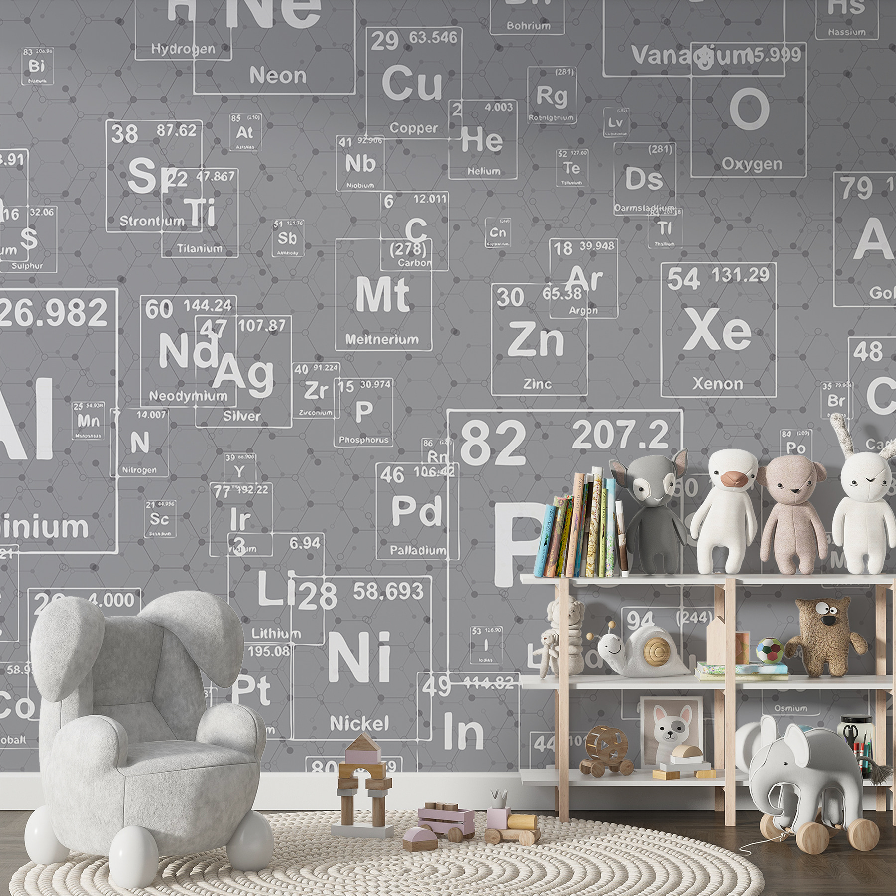 ¿Alguna vez has pensado que tus paredes necesitan un toque intelectual? Echa un vistazo a este mural “Letra blanca sobre fondo gris”. Es como envolver tu habitación con un encanto académico sin libros de texto polvorientos. Perfecto para cualquiera a quien le guste la tabla periódica pero quiera que tenga, ya sabes, estilo. Los tonos grises apagados mantienen la calma, mientras que las letras blancas y nítidas resaltan lo suficiente como para captar tu atención. Imagínate tomarte el café por la mañana y sentirte un poco más inteligente; en serio, es como tener un pequeño laboratorio de ciencias en el salón, sin las batas de laboratorio. Ideal para espacios contemporáneos y para añadir ese factor sorpresa a cualquier habitación.