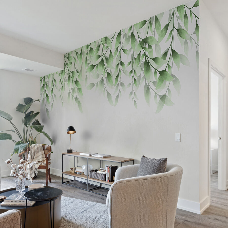 Imagine despertarse cada mañana con una apacible cascada de hojas verdes colgando suavemente sobre un suave fondo blanco. Este mural de pared “Hojas verdes sobre fondo blanco” es como tener un pequeño jardín interior sin tener que regar las plantas. Es perfecto para dar un toque de naturaleza a cualquier habitación sin recargar el espacio.
