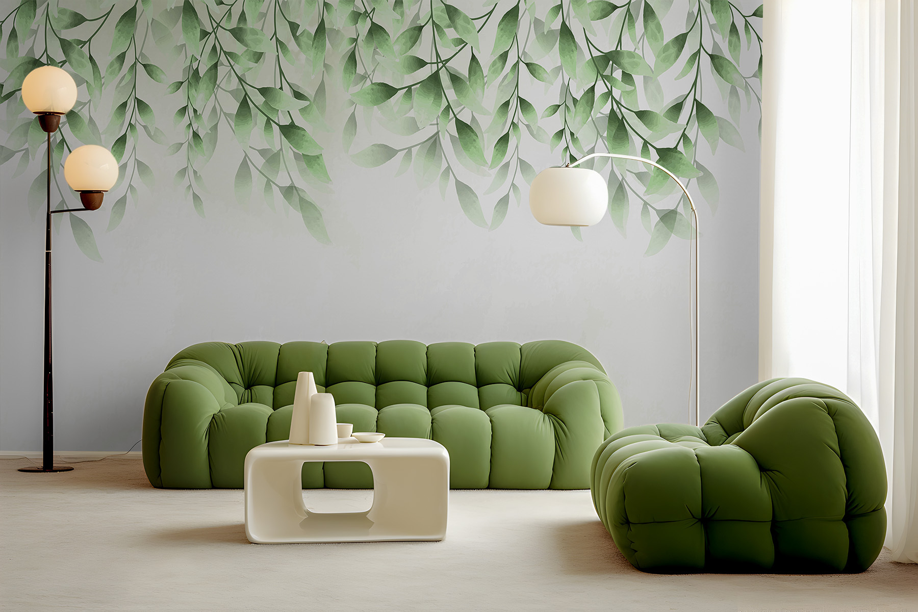 Imagine despertarse cada mañana con una apacible cascada de hojas verdes colgando suavemente sobre un suave fondo blanco. Este mural de pared “Hojas verdes sobre fondo blanco” es como tener un pequeño jardín interior sin tener que regar las plantas. Es perfecto para dar un toque de naturaleza a cualquier habitación sin recargar el espacio.