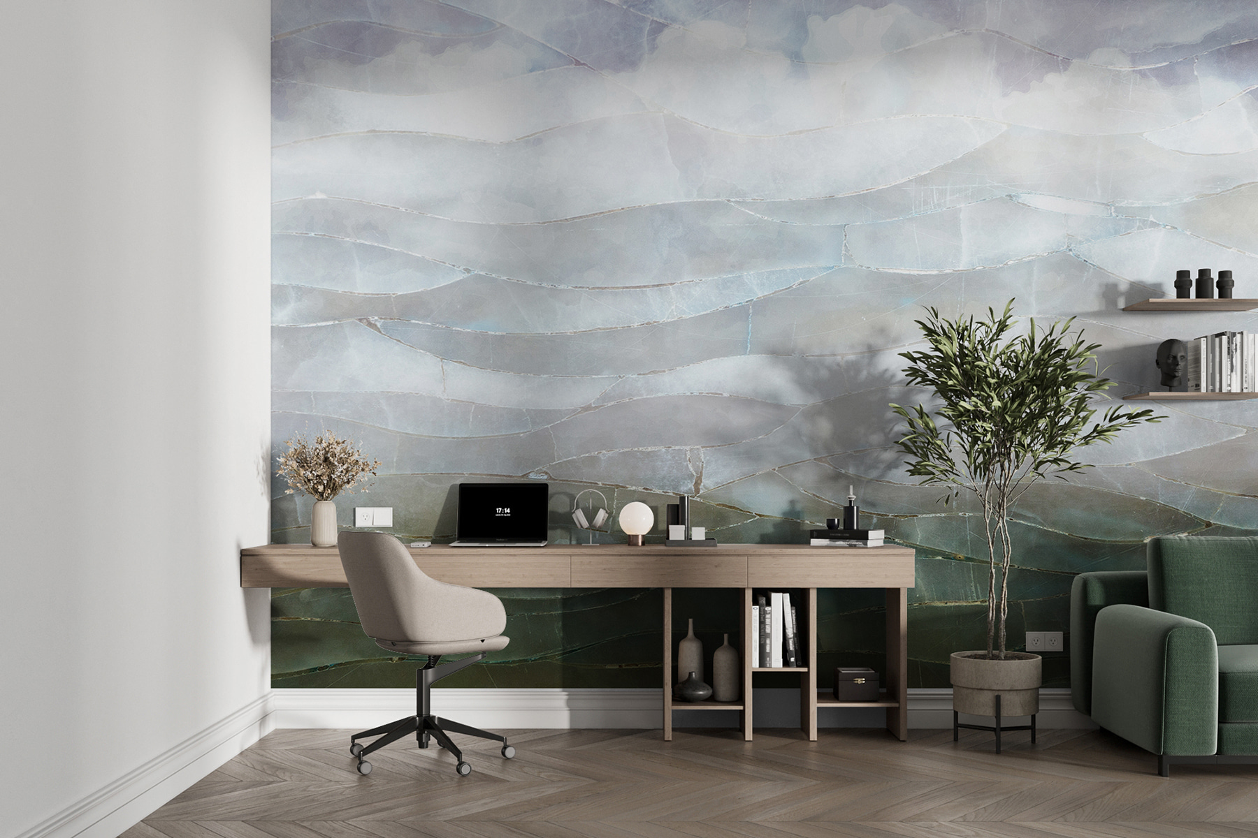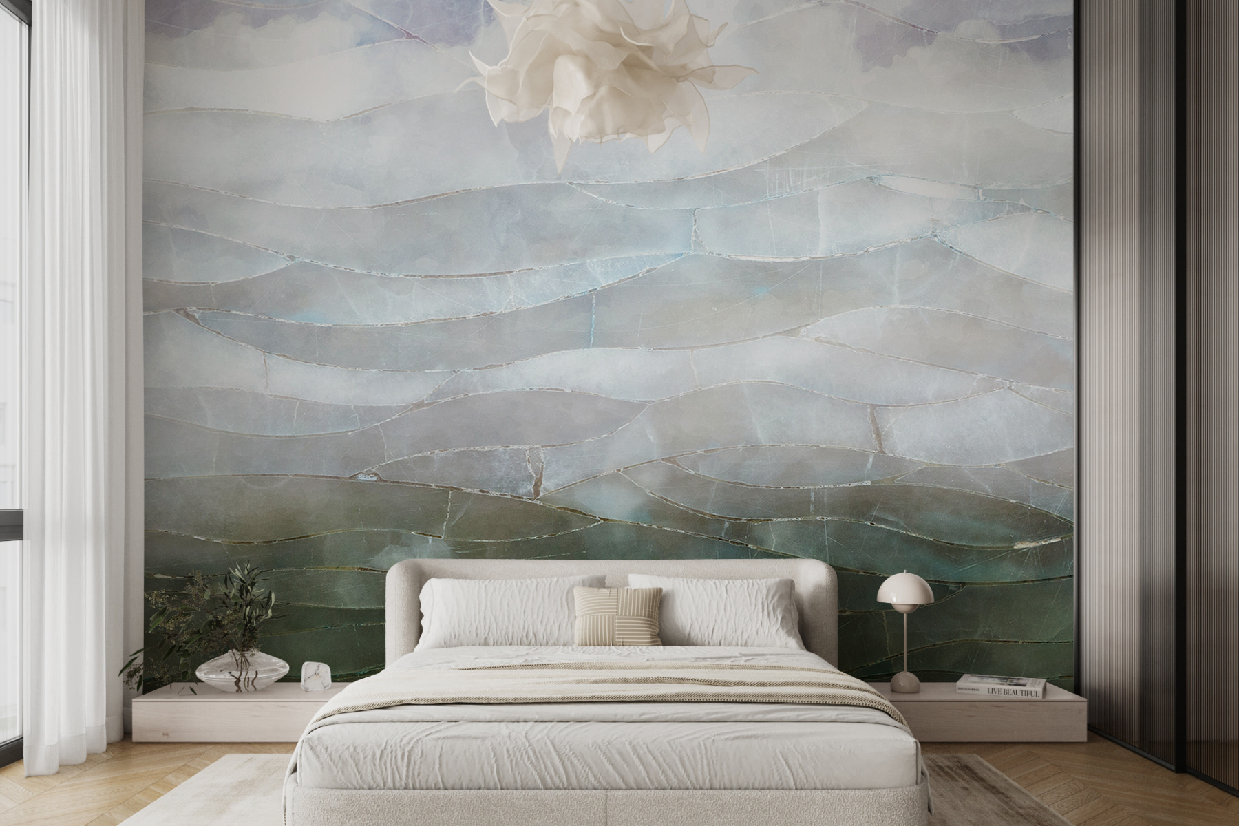 Imagínatelo: llegas a casa después de un largo día, te tumbas en el sofá y miras a la pared: te transporta instantáneamente a un lugar donde el cielo se encuentra con el mar, con una mezcla perfecta de colores y texturas. Los patrones ondulados tienen un efecto 3D impresionante, que hace que la pared parezca casi viva. Genial, ¿verdad? Es perfecto para un salón, un dormitorio o incluso un espacio de trabajo creativo.