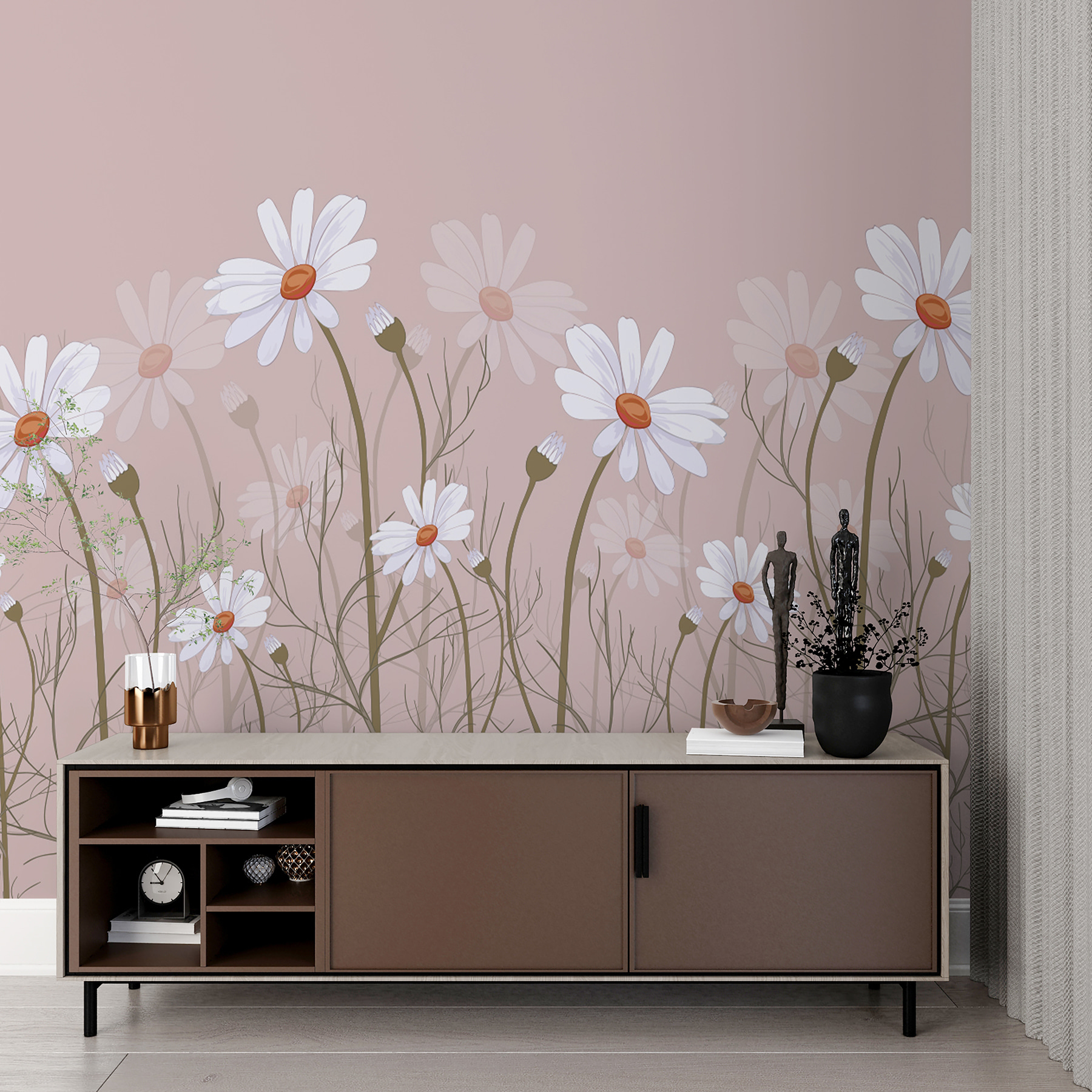 Decore su espacio con el encantador mural de pared “Margaritas blancas sobre fondo apagado”. Perfecto para los amantes del arte y la naturaleza. Imagínese despertarse con un campo de delicadas margaritas blancas bailando en la pared, sobre un fondo suave y sutil. Es como traer un prado al interior, ¡sin el polen! Este mural de nuestra colección Flores Contemporáneas es ideal para añadir un toque de encanto a cualquier habitación. Es alegre a la vez que relajante: un pequeño trozo de poder floral que seguro que le levantará el ánimo y le alegrará el día. Ideal para dormitorios, salones o incluso rincones de lectura. Acogedor y bonito, seguro que se convierte en un tema de conversación o en un lugar para soñar despierto. Elegante sin esfuerzo, este mural hará que sus paredes florezcan de alegría.