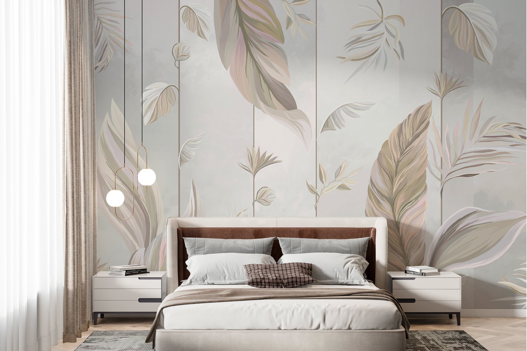 Transforme su espacio con el mural de pared “Hojas elegantes”. Imagínese estar en un jardín sereno cada vez que entre en la habitación. Los suaves tonos pastel son como un suave susurro de color, haciendo que todo parezca tranquilo y fresco. Es el tipo de mural que le hace querer sentarse con un buen libro (y tal vez una taza de té).
