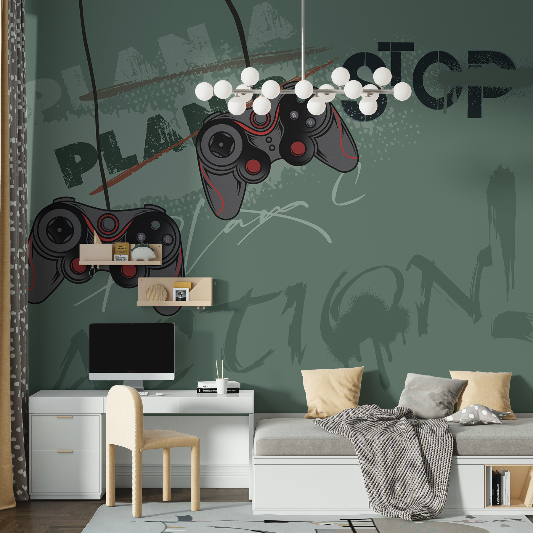 Añada un toque de energía lúdica a su espacio con este mural de pared “Mando de videojuegos”. Perfecto para el estudio de cualquier jugador, la habitación de un adolescente o un rincón peculiar de la casa. Los atrevidos mandos parecen saltar de la pared, capturando esa emoción infinita de encender un nuevo juego. Imagina a tus amigos entrando y sintiendo al instante ese subidón nostálgico.