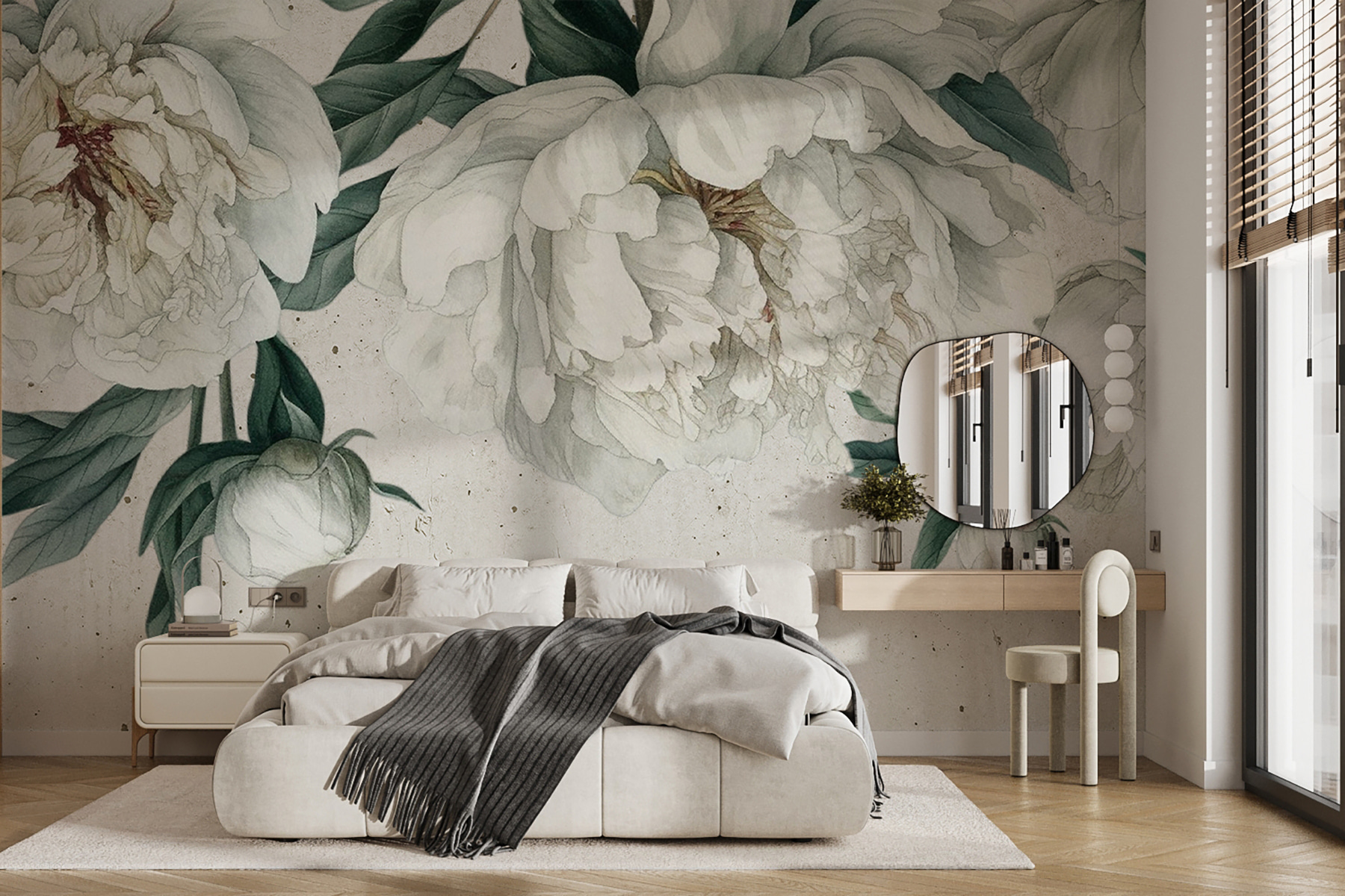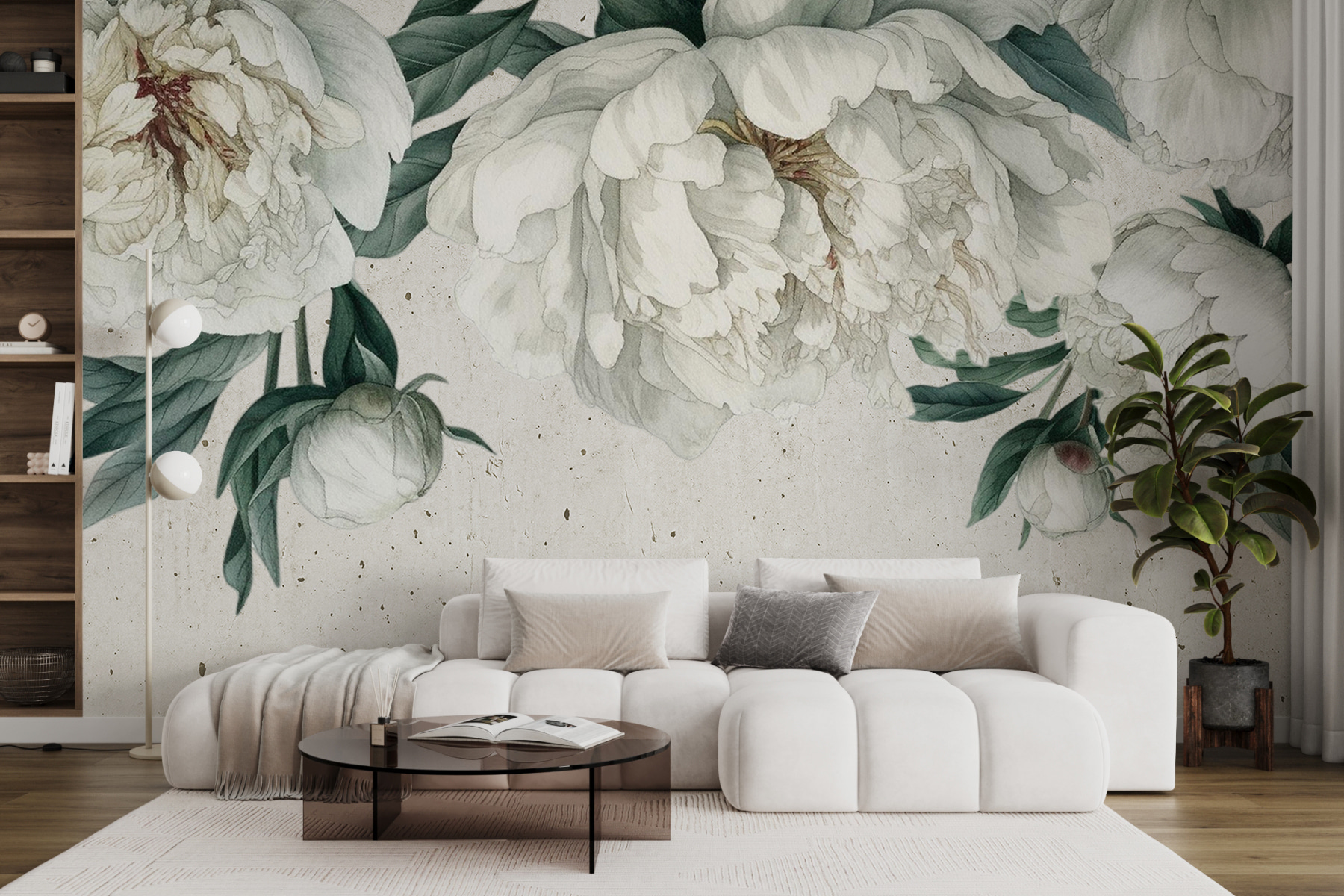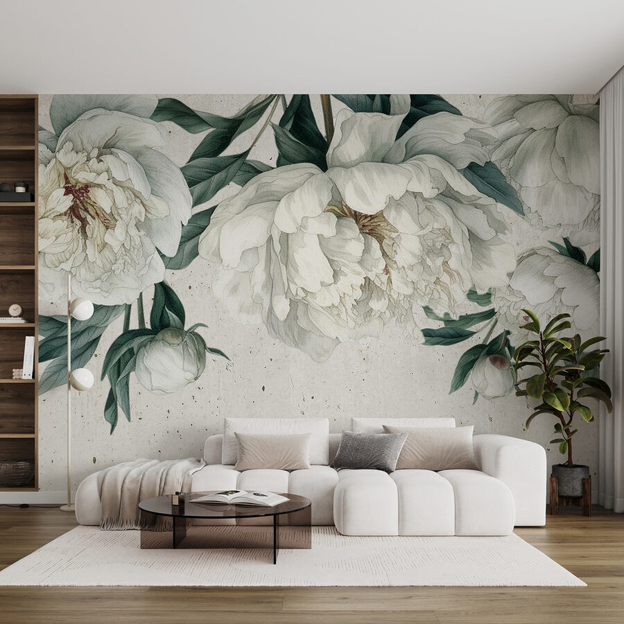 Transforme cualquier habitación con este precioso mural de pared con peonías blancas entre exuberantes hojas verdes. Imagínese entrar en su espacio y sentir que acaba de pasear por un jardín sereno, ¡qué ambiente tan encantador! Este mural no es sólo una pieza de decoración; cuenta una historia de elegancia y tranquilidad. Los suaves pétalos casi susurran relajación, por lo que es perfecto para un acogedor rincón de lectura o una acogedora sala de estar.