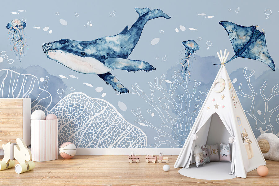 Sumérjase en un hipnotizante mundo submarino con este precioso “Mural de pared Ballena se desliza a través de una vibrante escena oceánica”. ¿Alguna vez ha soñado con tener una relajante vista del océano en el salón de su casa? Este mural puede ser la solución. Con una majestuosa ballena, gentiles medusas y vibrantes criaturas marinas, es a la vez caprichoso y sereno. El efecto de acuarela añade un toque suave y soñador, como si estuvieras mirando a través de una ventana del océano. Imagínate relajándote con esto como telón de fondo, ¡sintiéndote como un avezado explorador del mar! Ya sea para la habitación de un niño, un rincón de lectura o el corazón de tu hogar, rocía un poco de magia oceánica. Créeme, cada mirada te transportará a tranquilas costas.