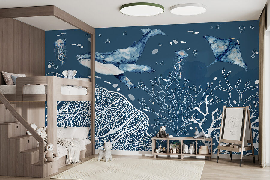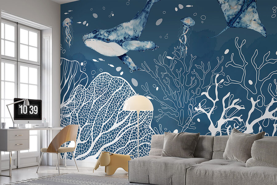 Sumérjase en las serenas e hipnotizantes profundidades del océano con el mural de pared “Maravillas submarinas de las profundidades marinas”. Con una encantadora escena de ballenas, gráciles rayas y curiosas medusas, este mural transforma cualquier espacio en un tranquilo paraíso marino. Imagínese los relajantes tonos azules y los intrincados detalles acuáticos animando su habitación. Perfecto para añadir un poco de escapismo a su pared – es casi como bucear sin mojarse. Una gran elección para los amantes del océano o para cualquiera que desee un trozo de tranquilidad en casa. Créame, este mural es un tema de conversación y un complemento de ensueño para cualquier habitación.