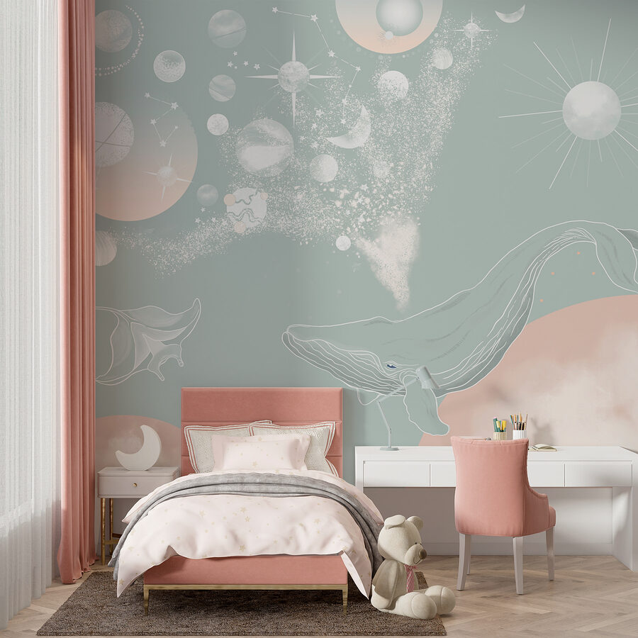 Imagínatelo: Un caprichoso mural llamado “Círculo blanco con manchas negras”, que forma parte de categorías como Murales de animales y Murales infantiles. Imagine que la habitación de su hijo se transforma en un espacio encantador con este divertido diseño. Es como combinar un día en la playa con una noche bajo las estrellas. Con suaves ballenas flotando entre círculos y planetas de ensueño, despierta la curiosidad y añade un toque de magia. Ideal para guarderías, salas de juegos infantiles o incluso un rincón original del salón. No es sólo decoración; es una experiencia, que ofrece un ambiente sereno pero animado. Perfecto para soñadores y pequeños exploradores.