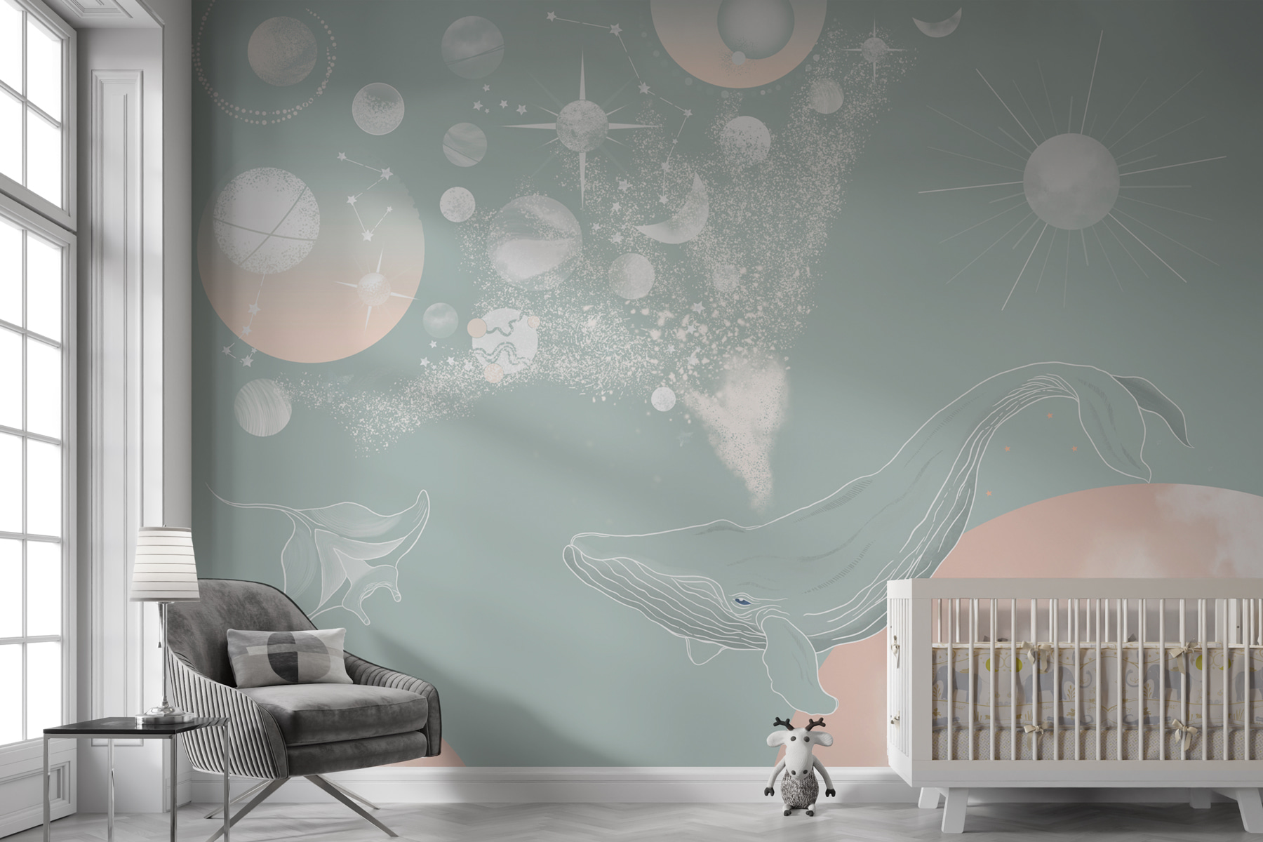 Imagínatelo: Un caprichoso mural llamado “Círculo blanco con manchas negras”, que forma parte de categorías como Murales de animales y Murales infantiles. Imagine que la habitación de su hijo se transforma en un espacio encantador con este divertido diseño. Es como combinar un día en la playa con una noche bajo las estrellas. Con suaves ballenas flotando entre círculos y planetas de ensueño, despierta la curiosidad y añade un toque de magia. Ideal para guarderías, salas de juegos infantiles o incluso un rincón original del salón. No es sólo decoración; es una experiencia, que ofrece un ambiente sereno pero animado. Perfecto para soñadores y pequeños exploradores.