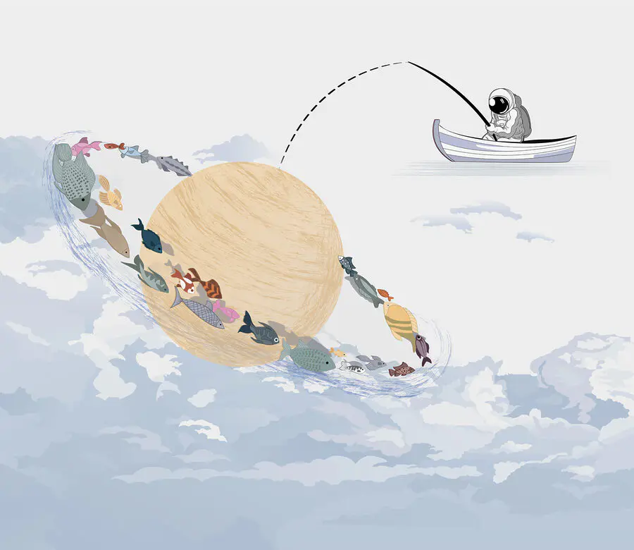 Sumérgete en un mundo donde el cielo se encuentra con el mar con este caprichoso mural de pared. Imagina un planeta gigante flotando entre nubes esponjosas, mientras peces juguetones nadan a su alrededor como si estuvieran en una aventura cósmica. El astronauta pescando tiene que ser lo más destacado: ¿quién iba a imaginar que conseguirían semejante pesca? Este mural aporta un toque de imaginación a cualquier habitación, haciéndola sentir como una acogedora escapada de la rutina diaria. Ya sea en el dormitorio de un niño o en una sala de estar peculiar, está destinado a despertar la alegría y las conversaciones. Imagínate cuántas sonrisas provocará.